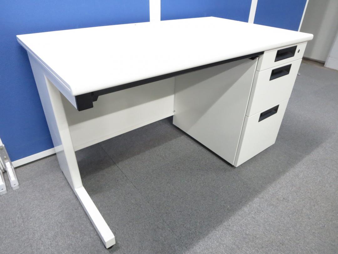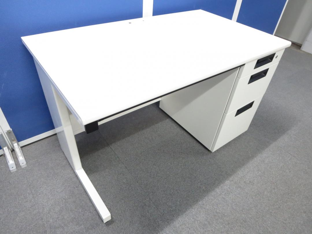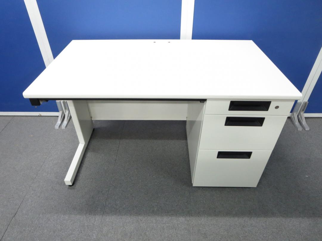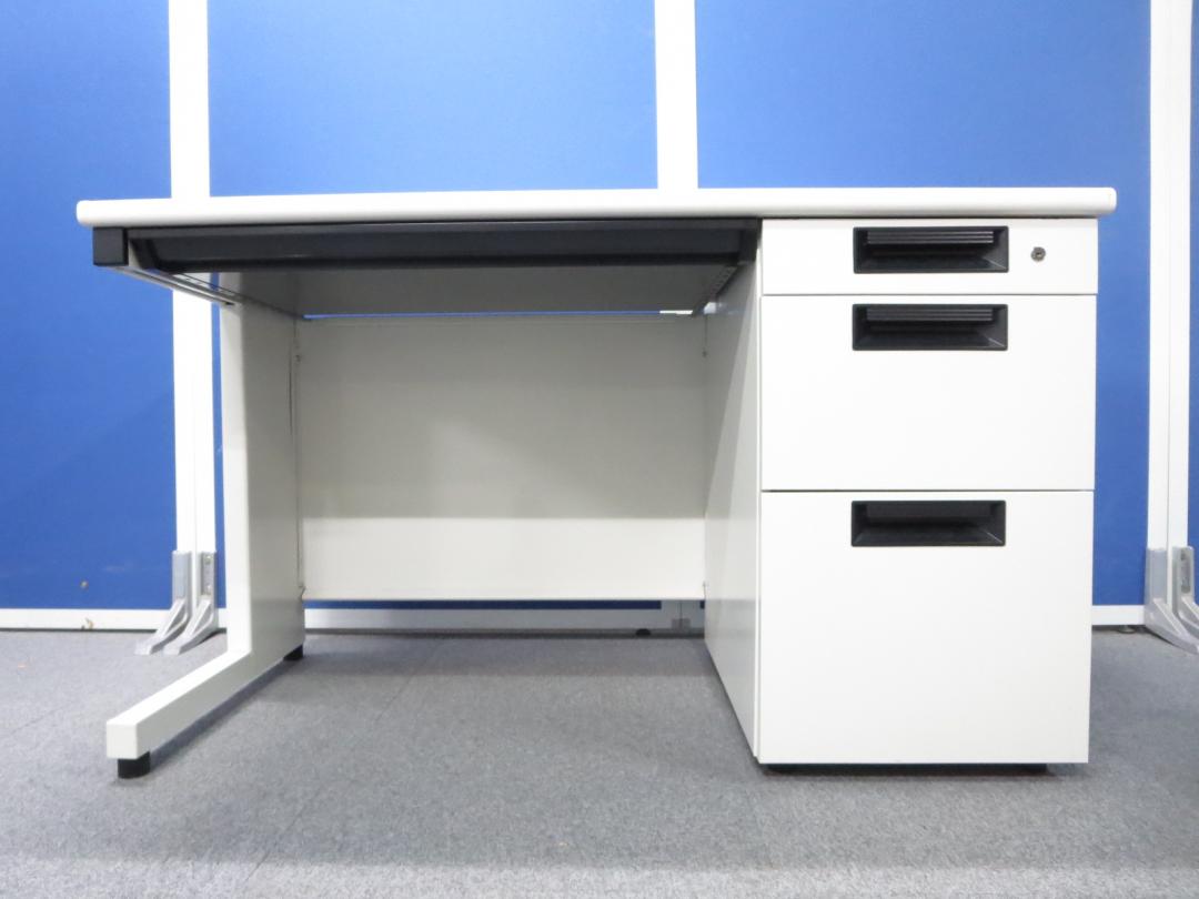 【キレイなホワイトカラー!】■片袖机 W1200mm ホワイト ■PLUS製 パソコン作業に便利な配線穴付き!- 川崎店