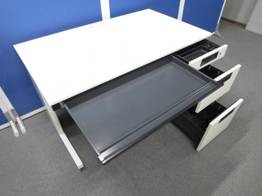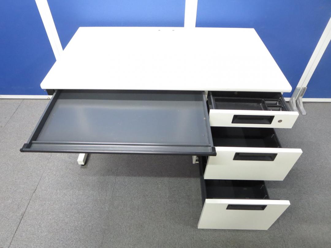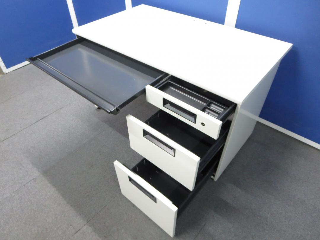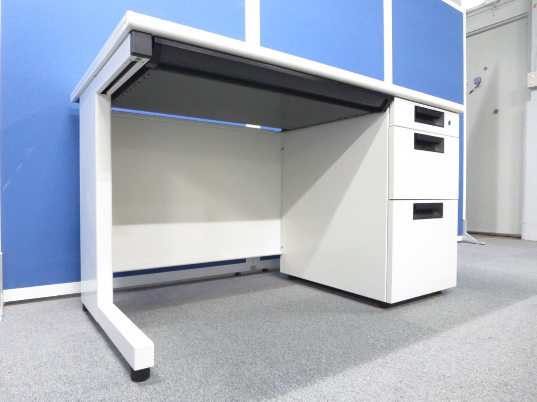 【キレイなホワイトカラー!】■片袖机 W1200mm ホワイト ■PLUS製 パソコン作業に便利な配線穴付き!- 川崎店