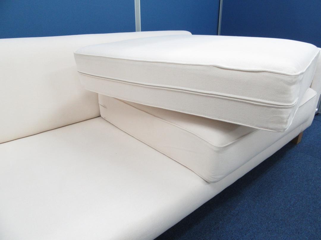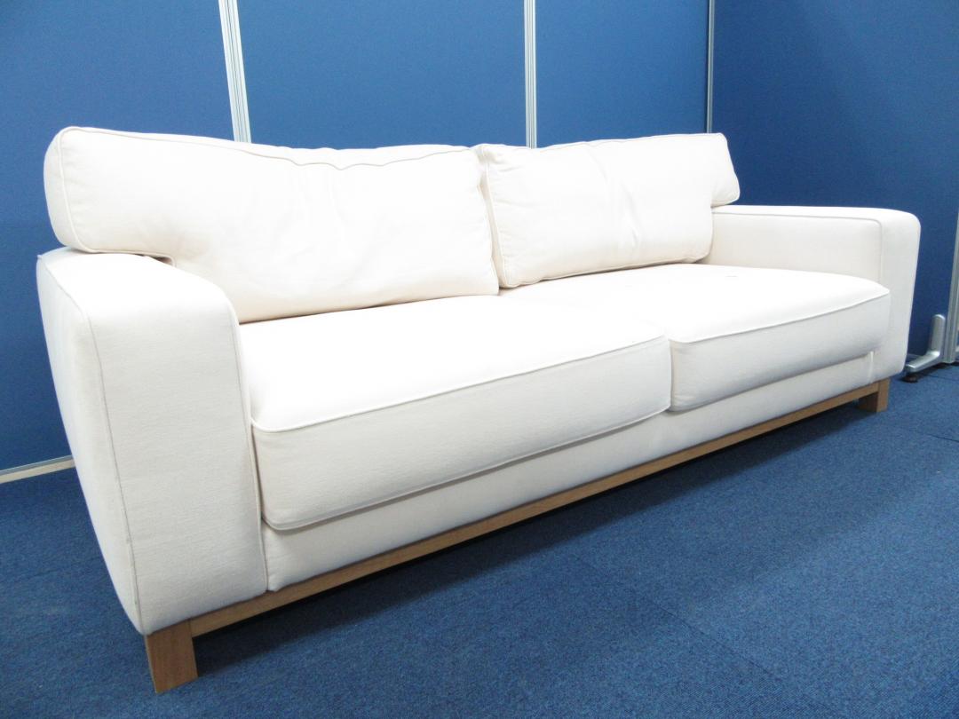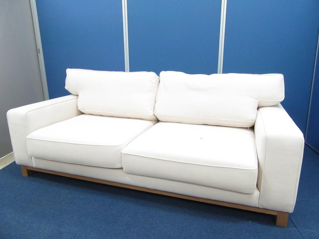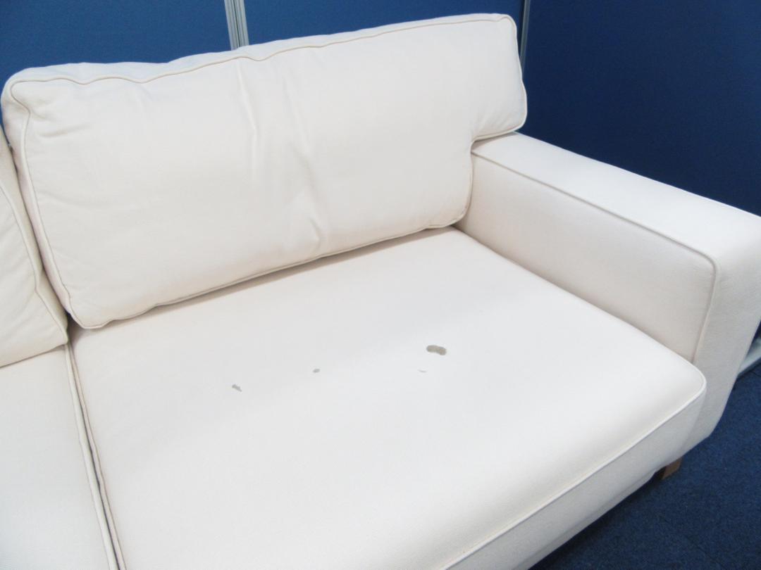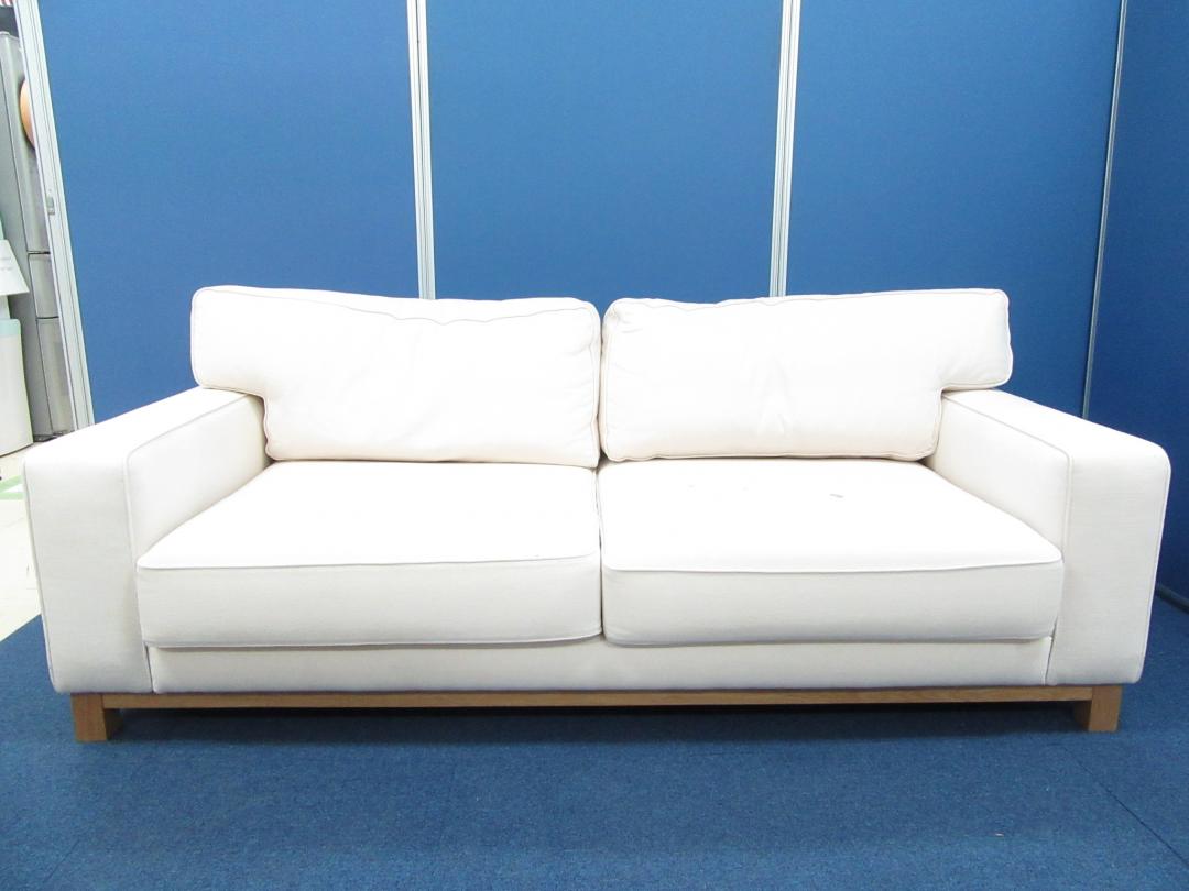 [専門業者クリーニング実施]大きくゆったりとくつろげる2人用ソファが入荷!!やさしいアイボリーカラー!!お持ち帰り大歓迎です!!※座面にシミ有[おつとめ品]- 足立・葛飾店