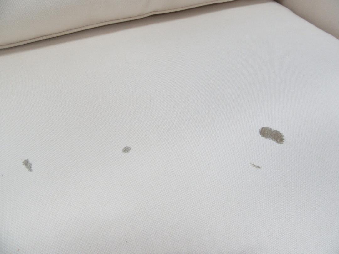 - あり黄ばみ・変色が広い範囲にうっすらある、または濃い黄ばみ・変色が一部ある。(例:三人用ソファ、二人用ソファ、一人用ソファの場合、背もたれ、肘かけ、座面等、 センターテーブルの場合、天板、脚にある。)