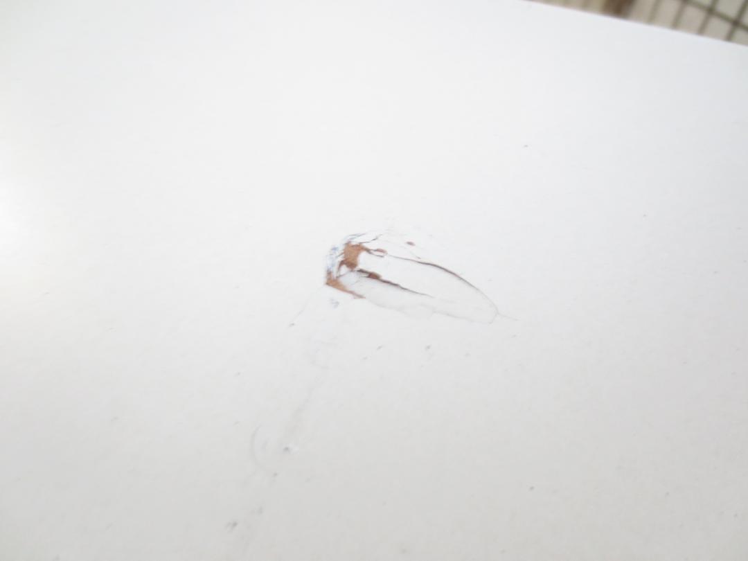 - あり黄ばみ・変色が広い範囲にうっすらある、または濃い黄ばみ・変色が一部ある。(例、天板、幕板、棚板、サイド部分、脚部等にある。)