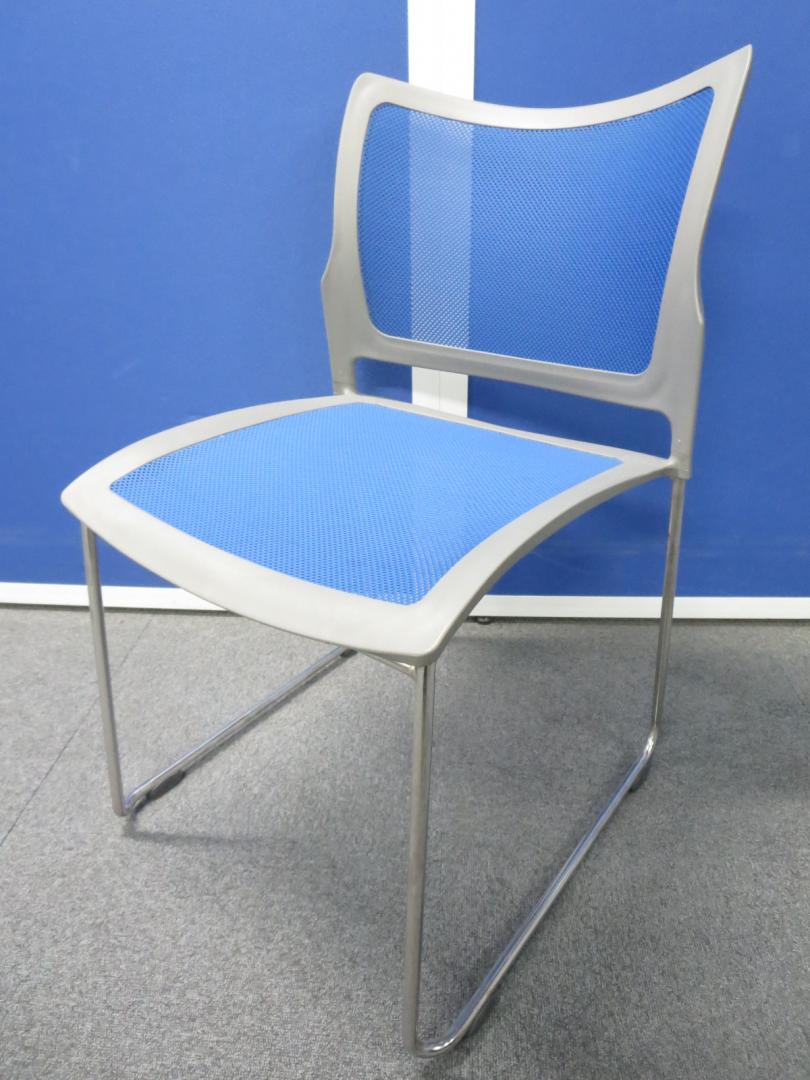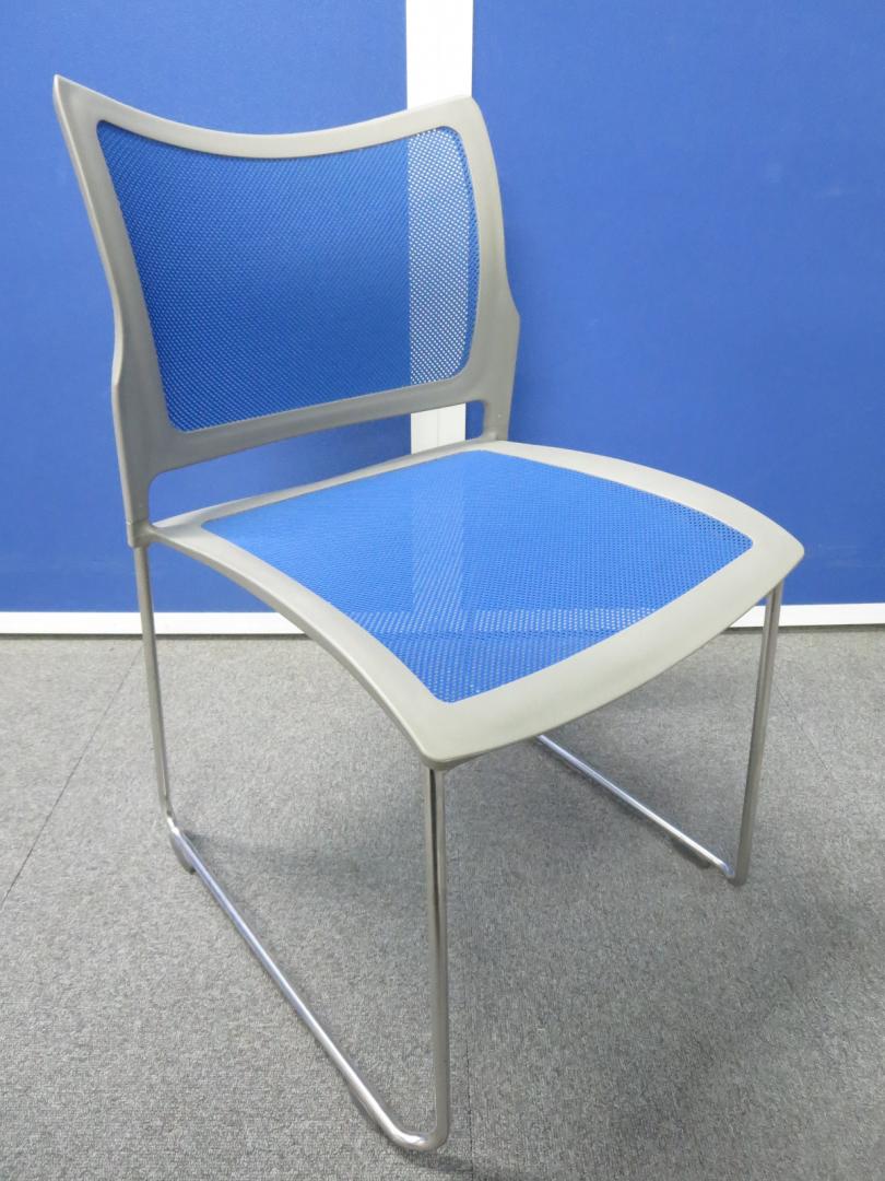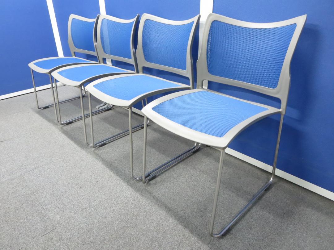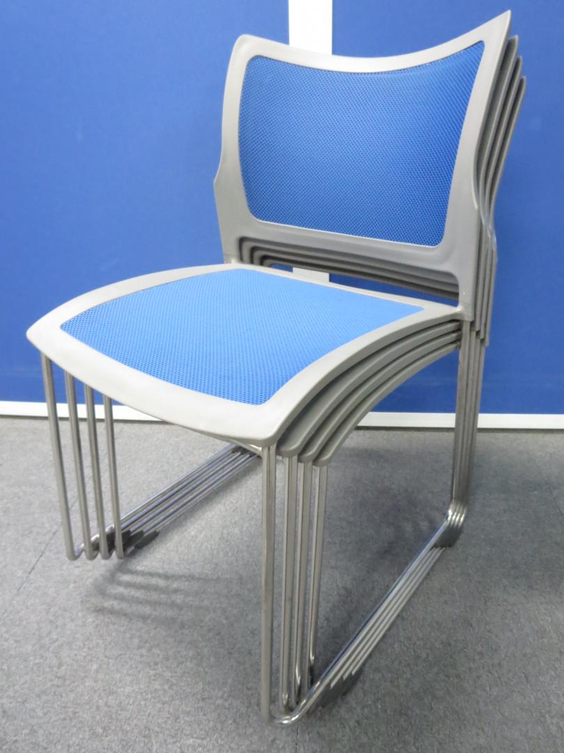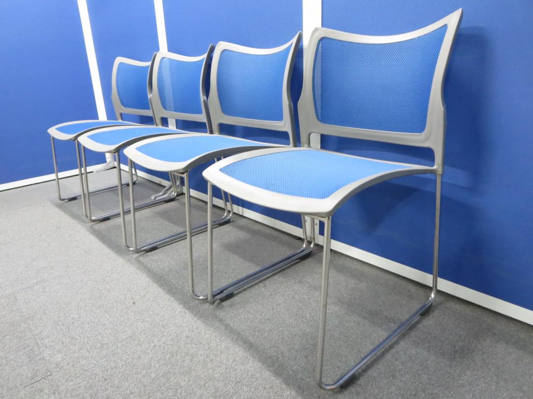 【爽やかなメッシュ!】■オカムラ スタッキングチェア ブルー■【okamura】ミーティング・会議用イス- 川崎店