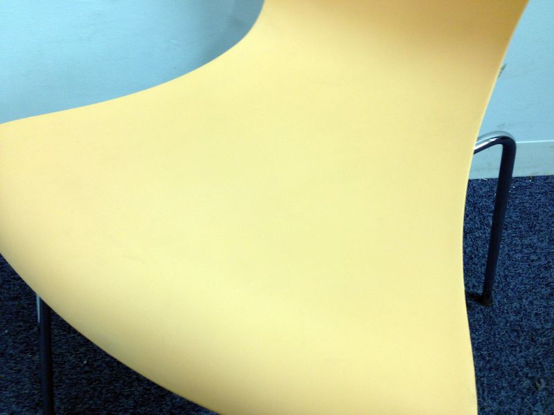 - かなり強い濃い黄ばみ・変色が商品全体にある。(例、座面・背もたれ、脚部等にある。)