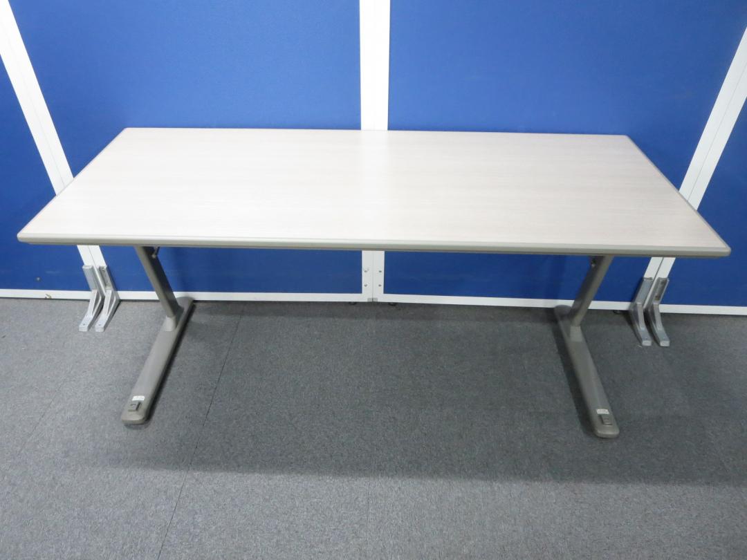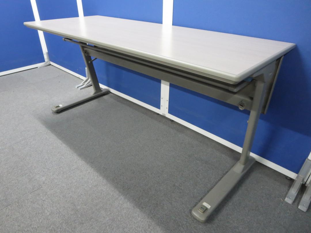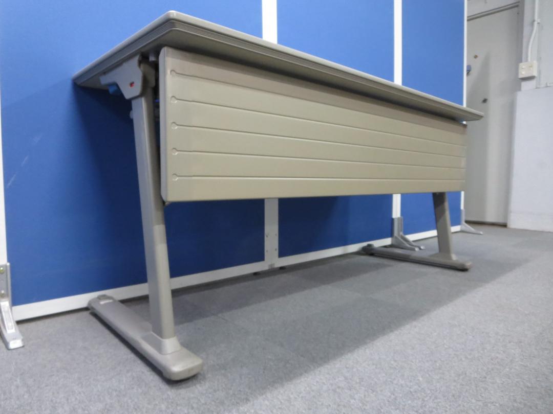 ■サイドスタックテーブル 木目柄【W1500×D600mmサイズ】幕板パネル付■オカムラ製【okamura】フォールディングテーブル- 川崎店