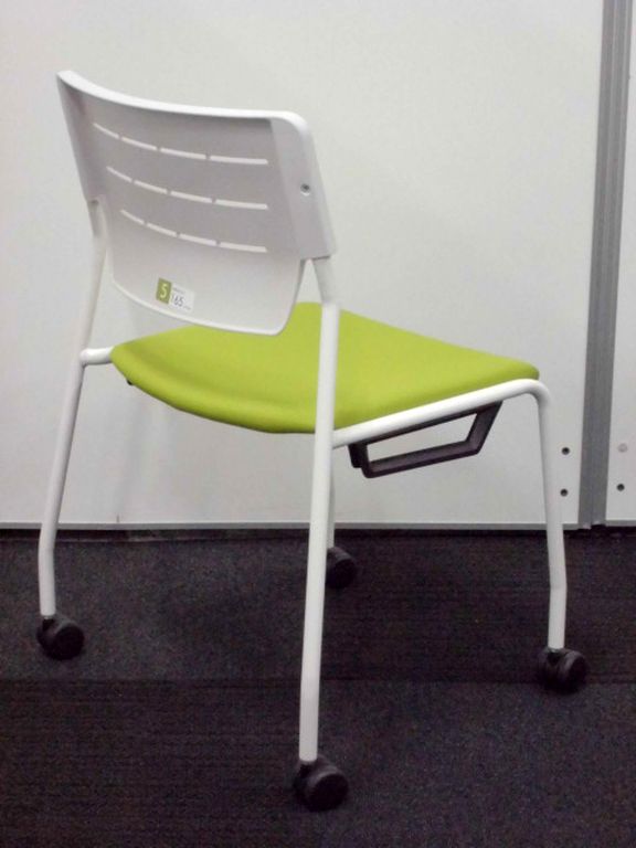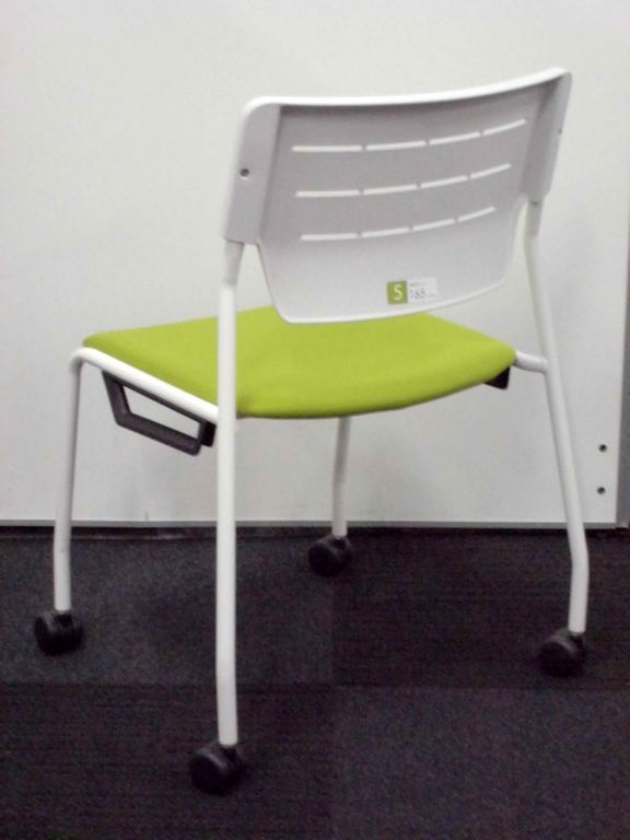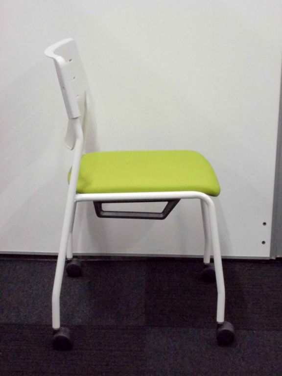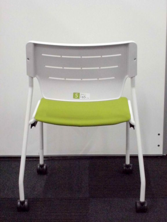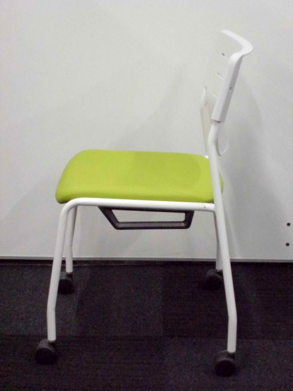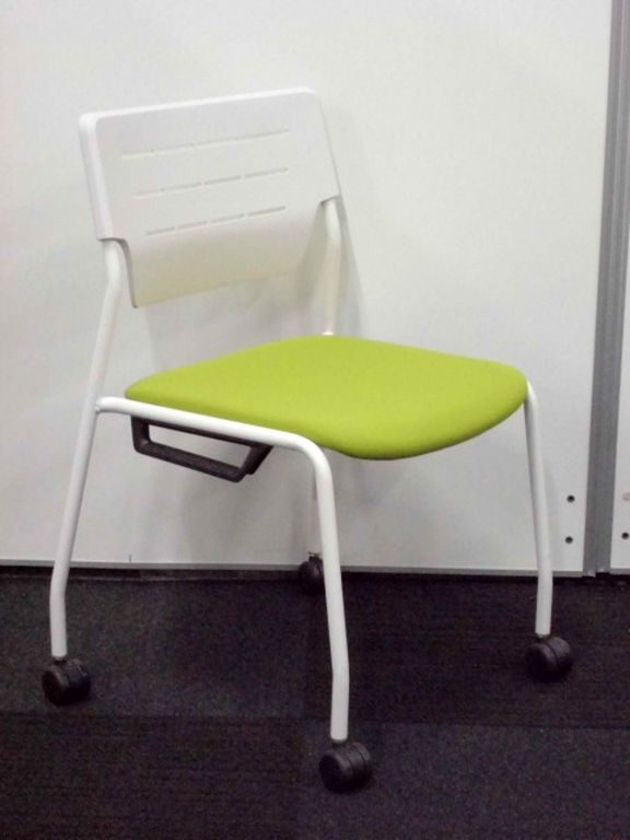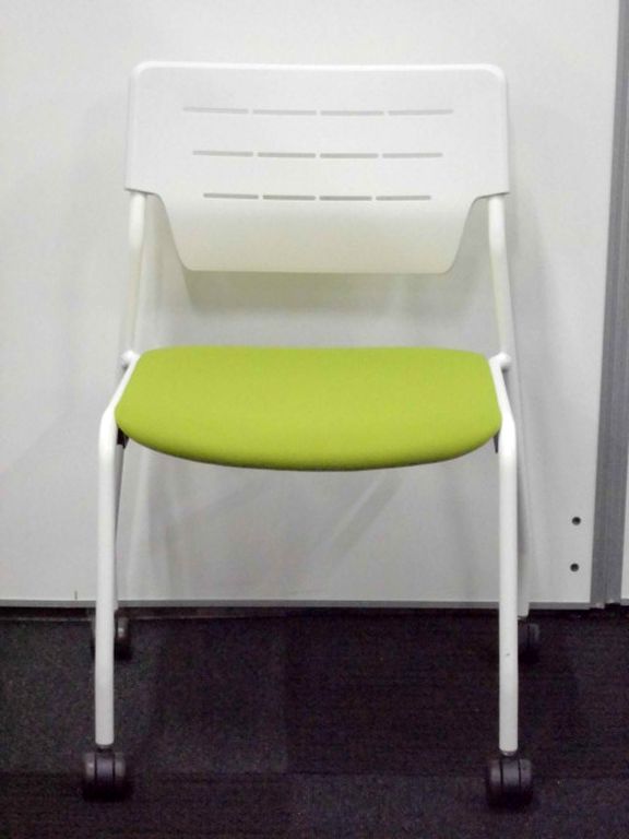 【キミドリ×ホワイト】可愛い配色のキャスター付スタッキングチェア【ラス1にて60%OFF】- 立川・八王子店