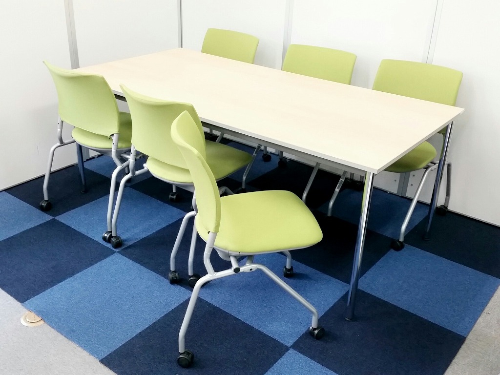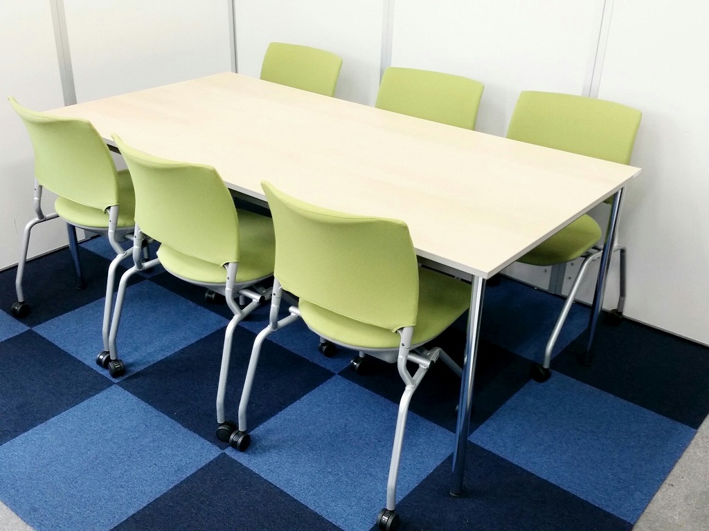 【お得なチェアとテーブルのセット】W1800のデスクとネスティングチェアチェア6脚のお得なセット!【内田洋行製】- 在庫数