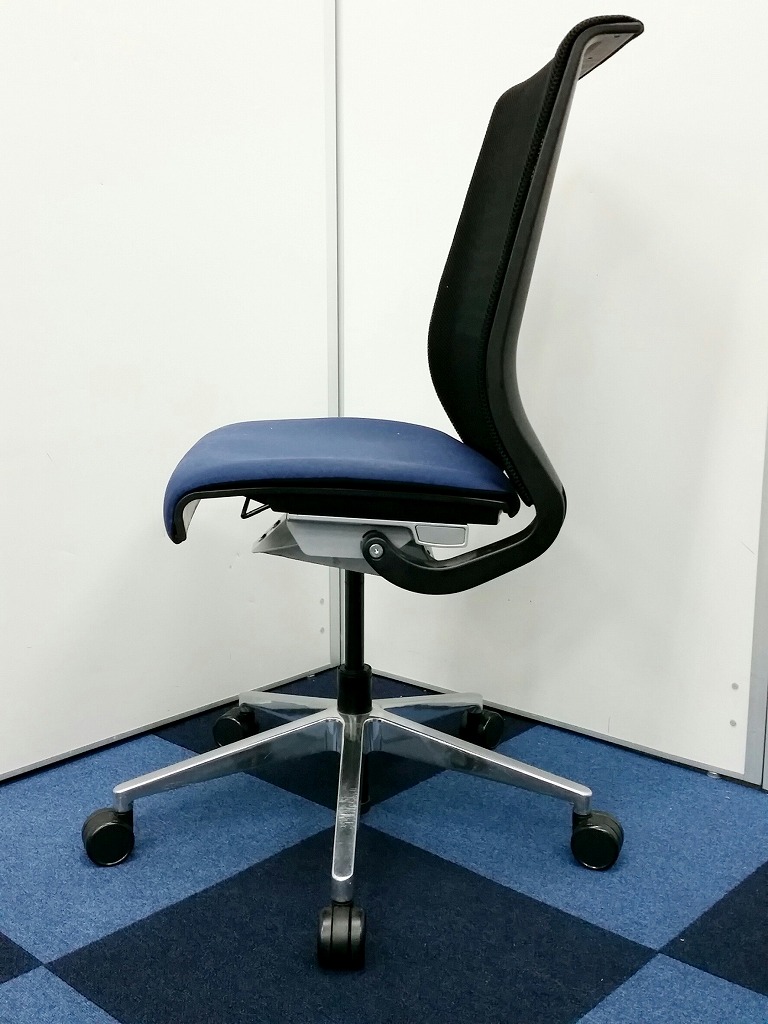 快適な座り心地に不可欠な調節機能である、上下昇降、座面の奥行き調整、リクライニングなどを備えており、操作もわかりやすく好評です。 特に、座面の奥行きは、座面下の左右に通った細いバーで調整でき、座ったままで軽やかに滑るように調整が可能です。 価格面では、新品では高めですが、中古は流通も多く、定価の3割前後の価格で高級チェアの座り心地を手に入れることができます!