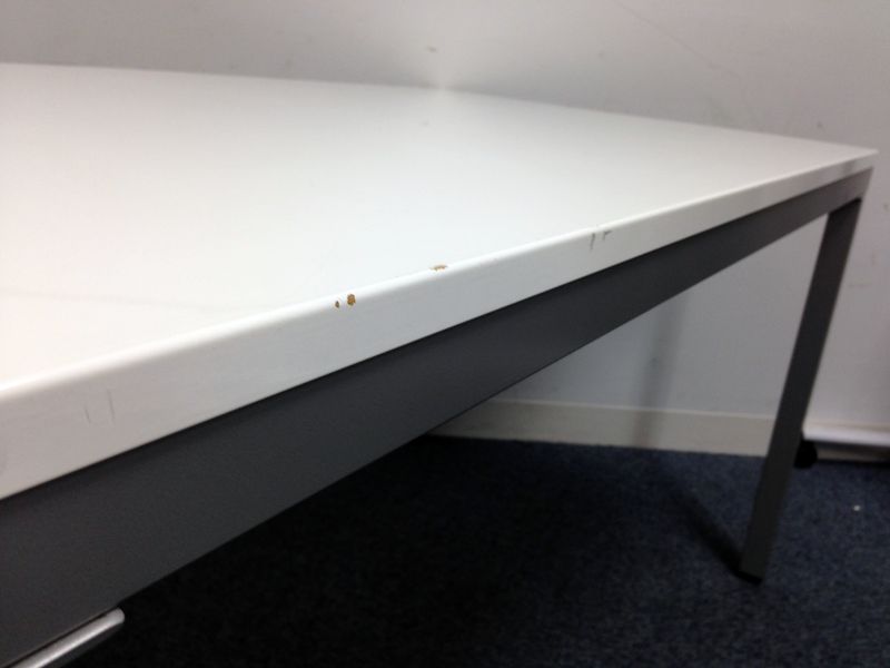 - 壊れている天板歪み、アジャスター無し、キャスター使用不可のようにそのテーブルの本来の効用を果たすための機能に不具合がある。