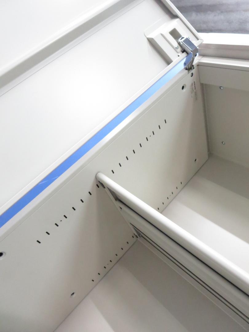 - 一部不具合ありそ引出の開閉不可、施錠不可、棚板無しといったの書庫の本来の効用を果たすための機能以外の一部が使用不可(例、扉、引出の開閉がしづらいなどがある。 )