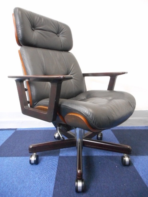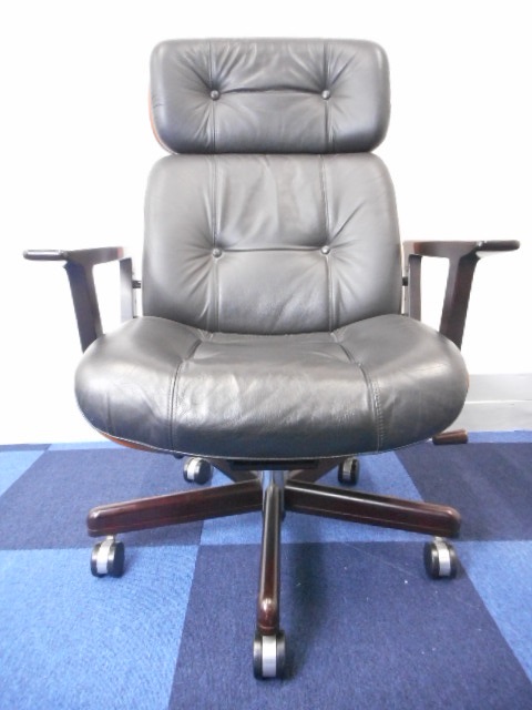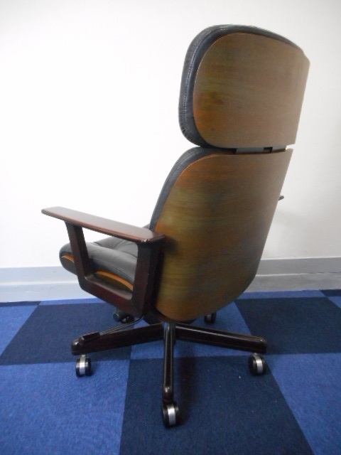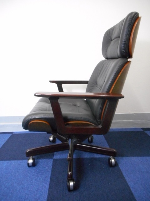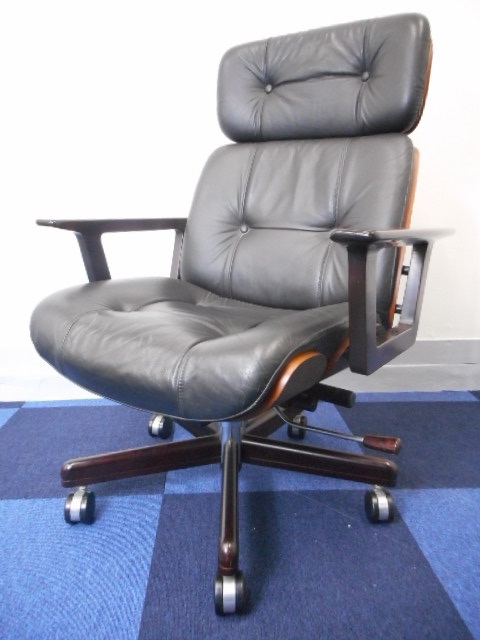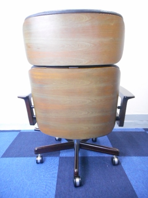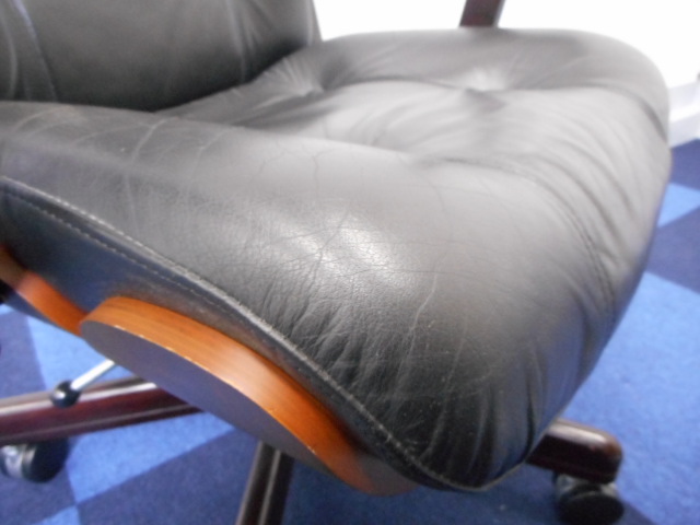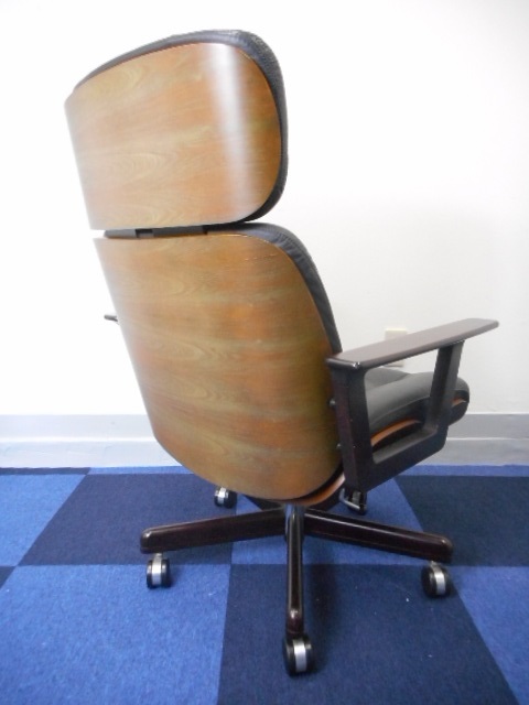 【KS】[役員様用チェア]イームズラウンジチェアのような木製のシェルが特徴的な味のあるデザイン[上下昇降不良の為お安くなっております]- 茨城南店