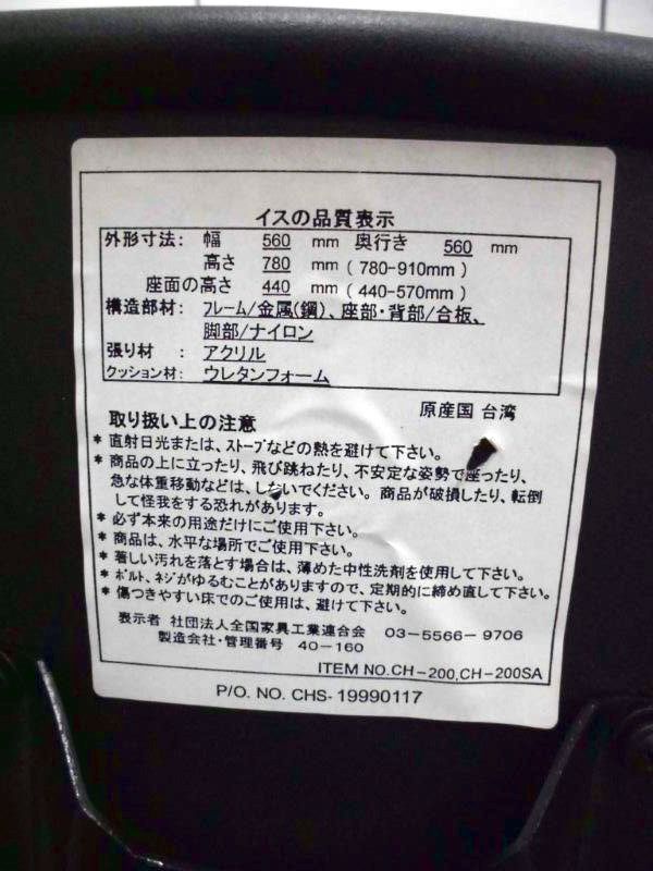 - 不具合多数そのチェアの本来の効用を果たすための機能に不具合ある。(例、オフィスチェアの上下昇降キャスター付きミーティングチェアのキャスター使用不可のような不 具合)