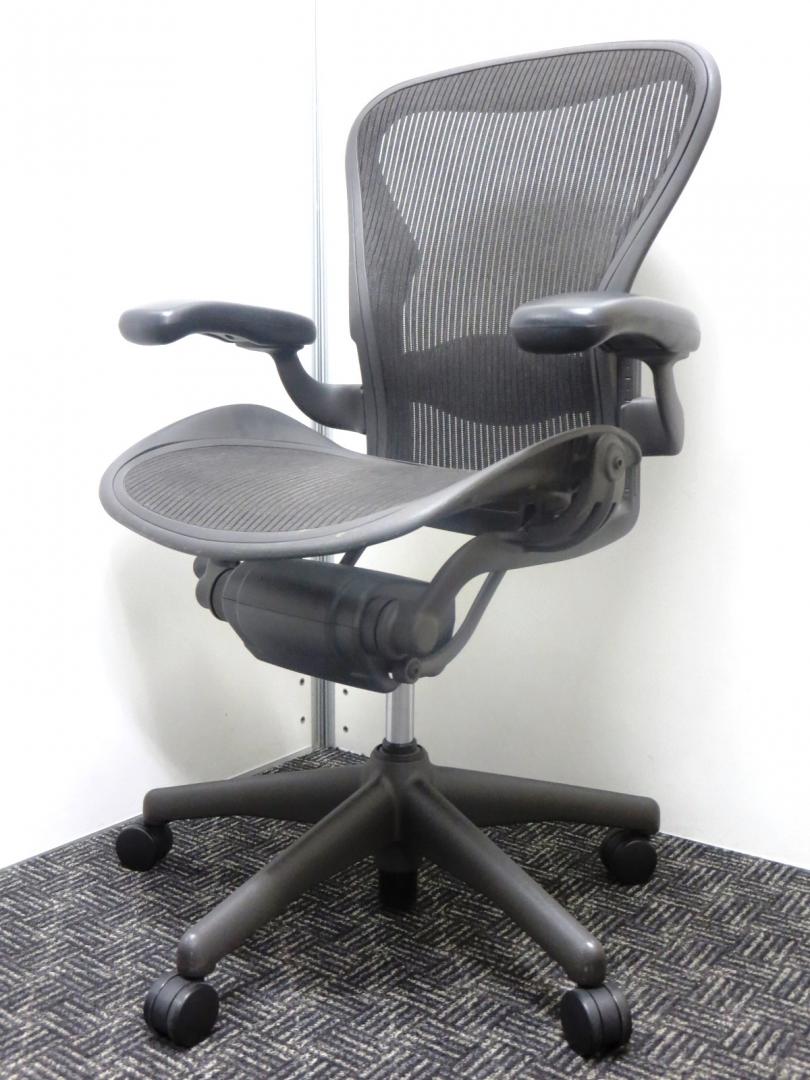 【★状態イマイチのためお安く!】■ハーマンミラー製 アーロンチェア Bサイズ 固定肘 ※キズあり・ランバーサポート無・昇降ガス圧弱めのためお安く!【訳あり特価品】