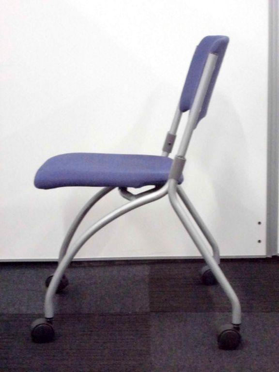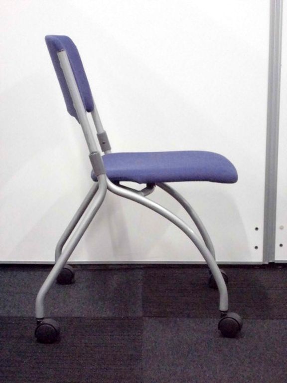 【平行・垂直2ウェイ収納!】コクヨ|スタッキングチェア(パープル)|キャスター付- 立川・八王子店