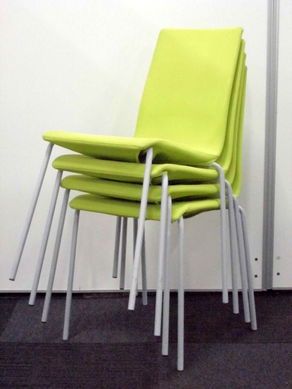 【シンプル&リーズナブル】重ねて収納できるスタッキングチェア【イエローグリーン】- 立川・八王子店