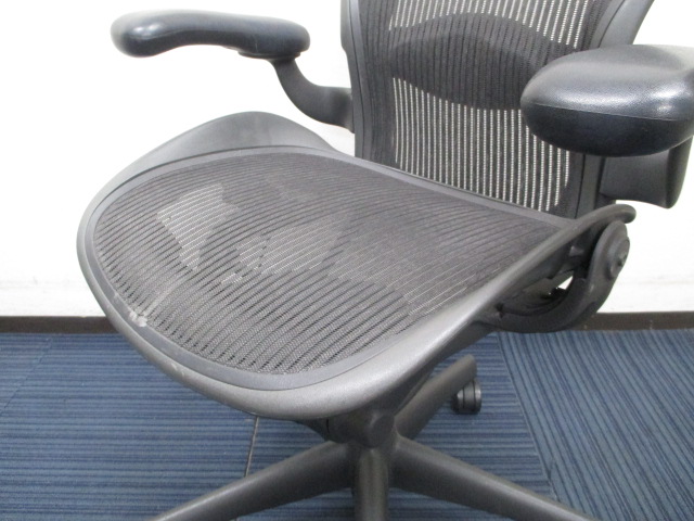 【★状態イマイチのためお安く!】■ハーマンミラー製 アーロンチェア Bサイズ 固定肘 ※キズあり・ランバーサポート無・昇降ガス圧弱めのためお安く!【訳あり特価品】