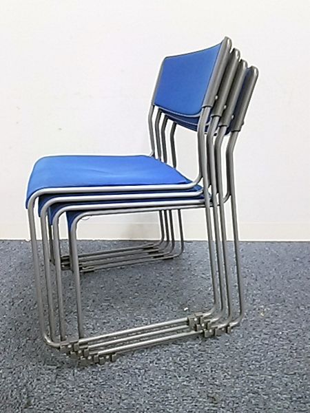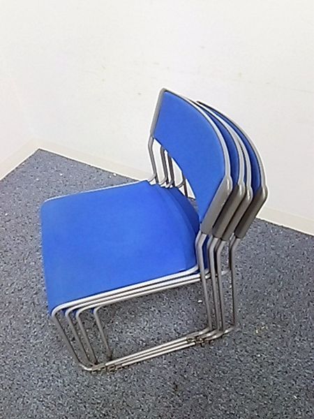 【15%オフ!4脚セットでお買い得!】ブルーの会議チェア|重ねて(スタッキング)収納- 名古屋千種店