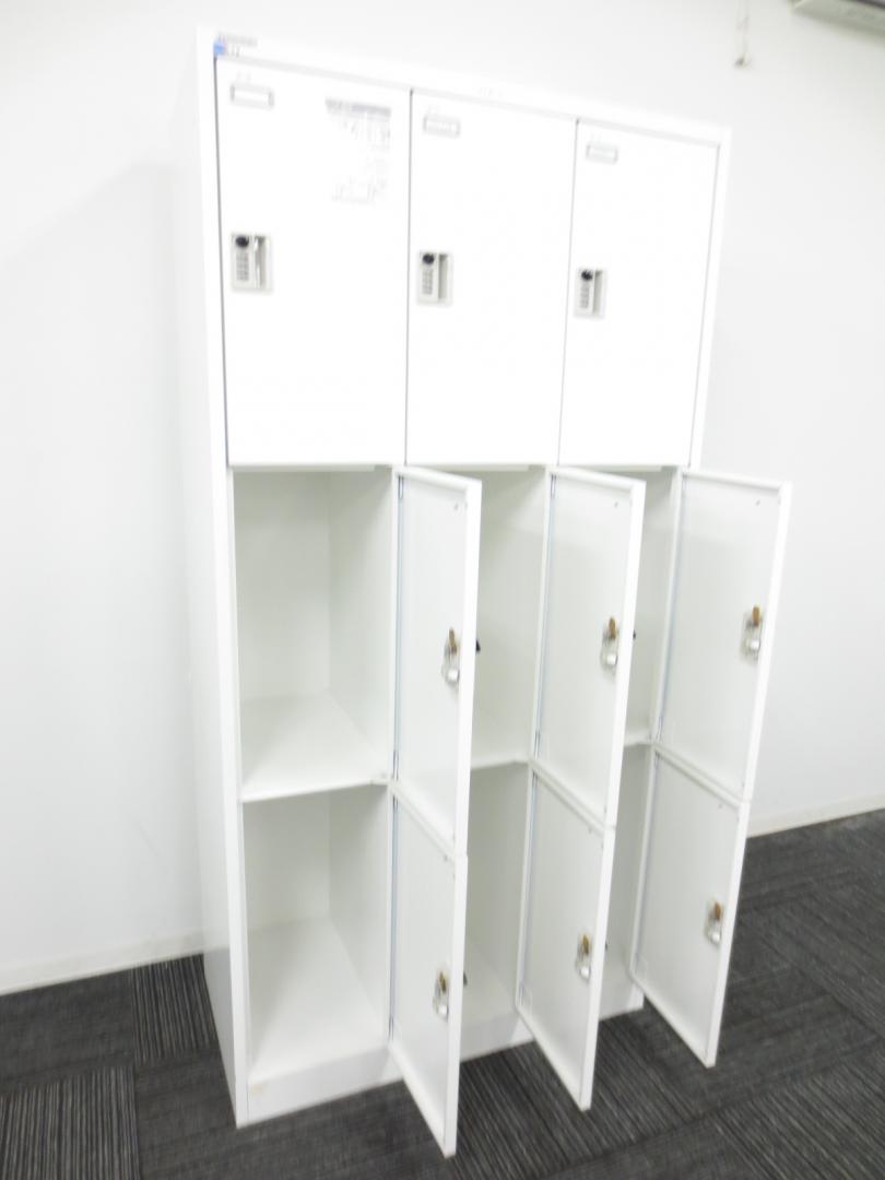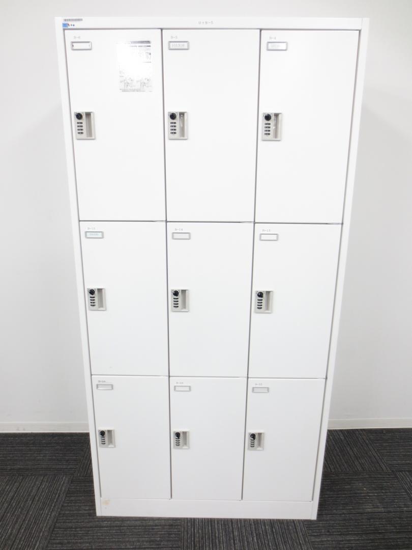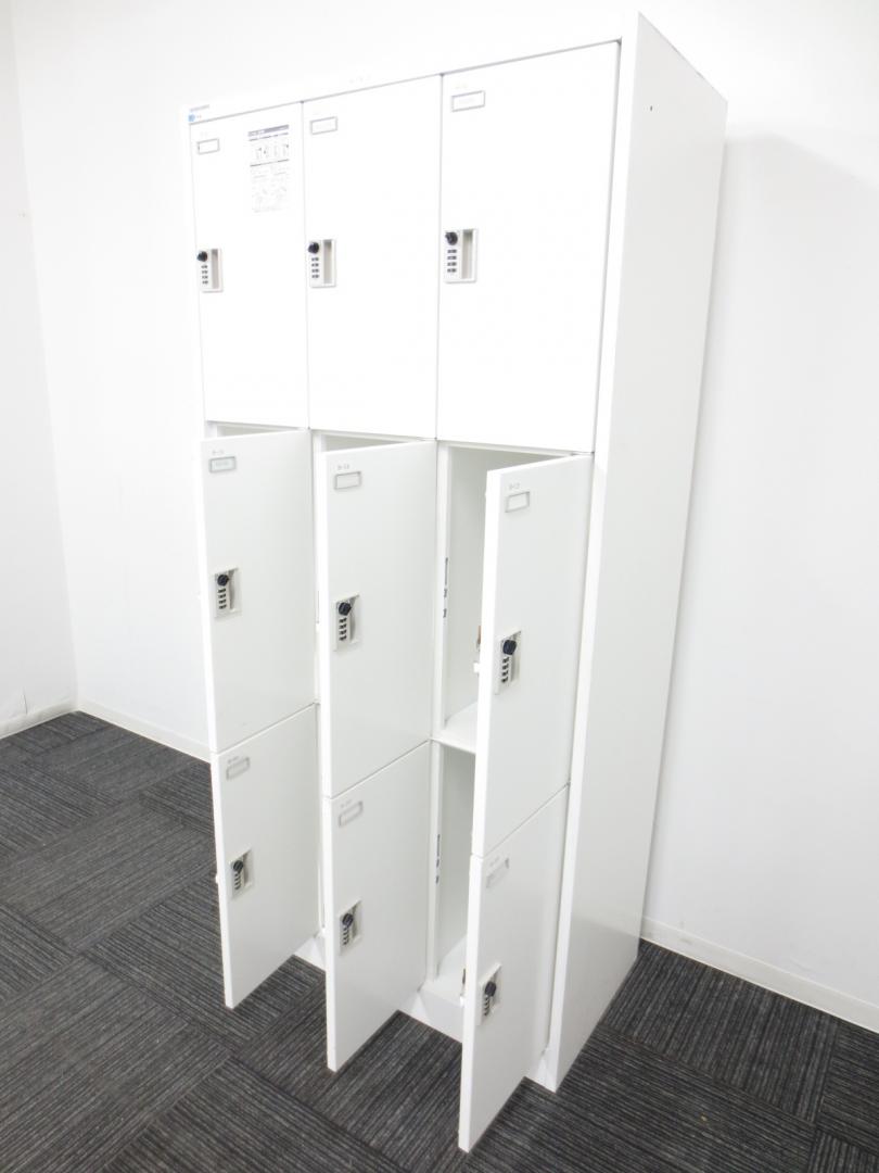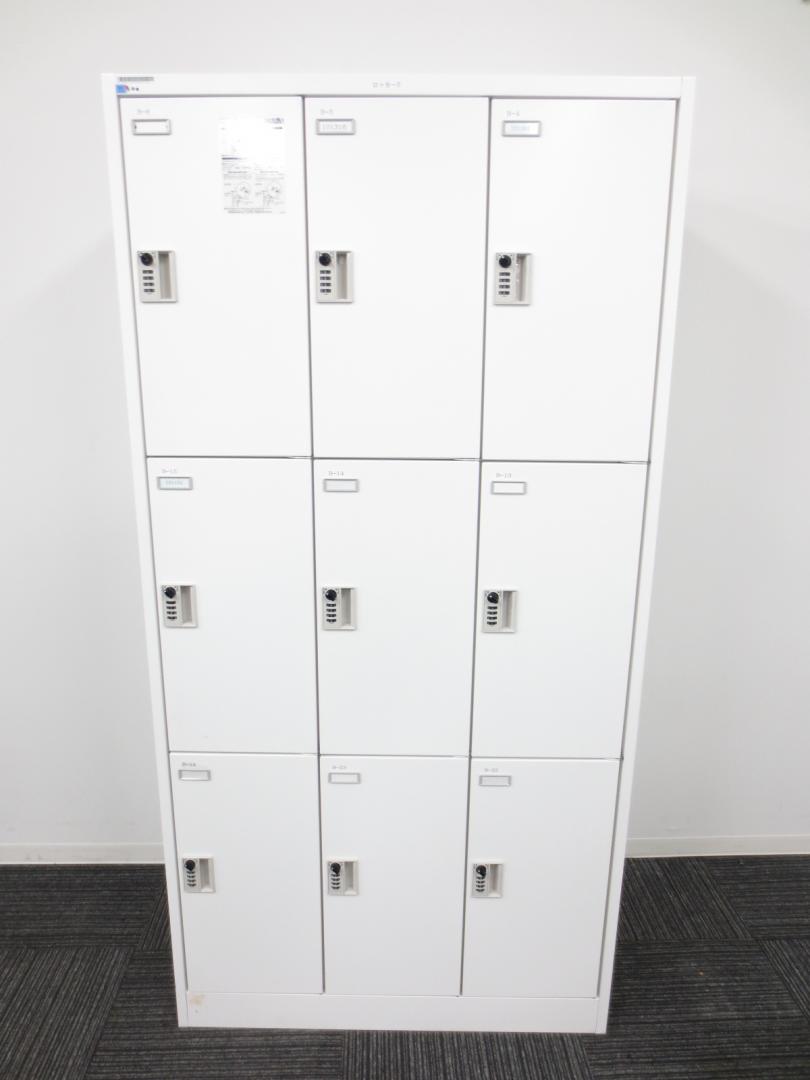 【状態良好】オカムラ製 9人用ロッカー ダイヤル式タイプ 3列3段 人気のホワイトカラー 人気の多人数用ロッカー、私物保管用やレンタルロッカー用としていかがですか?- 春日部・越谷店