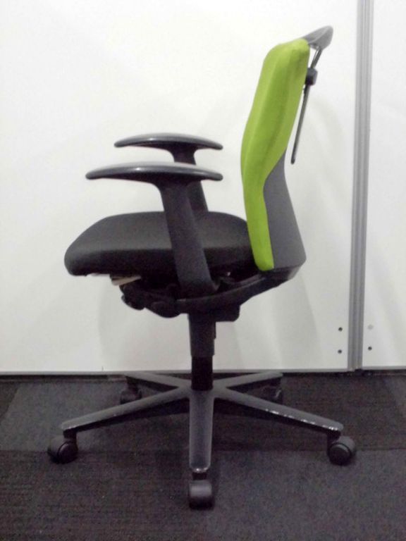 リクライニングの弾力調整、座面前後調節、上下と左右に動く可動肘