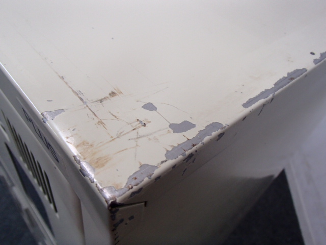 - 目立つ箇所あり傷・凹みが多数、深い傷・凹みが一部ある。(例、天板、正面、背部、サイド部分にある。)