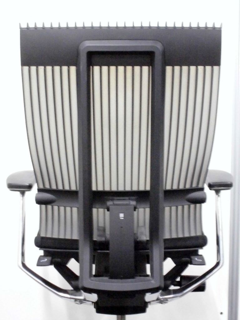 見た目は少し硬そうに見えるエラストマー素材ですが、座ってみると程よいしなり具合のやわらかな座り心地で、背中が痛くなるようなことはまるでありません。面ではなく線で支えることで、背面の通気性の良さは抜群です。