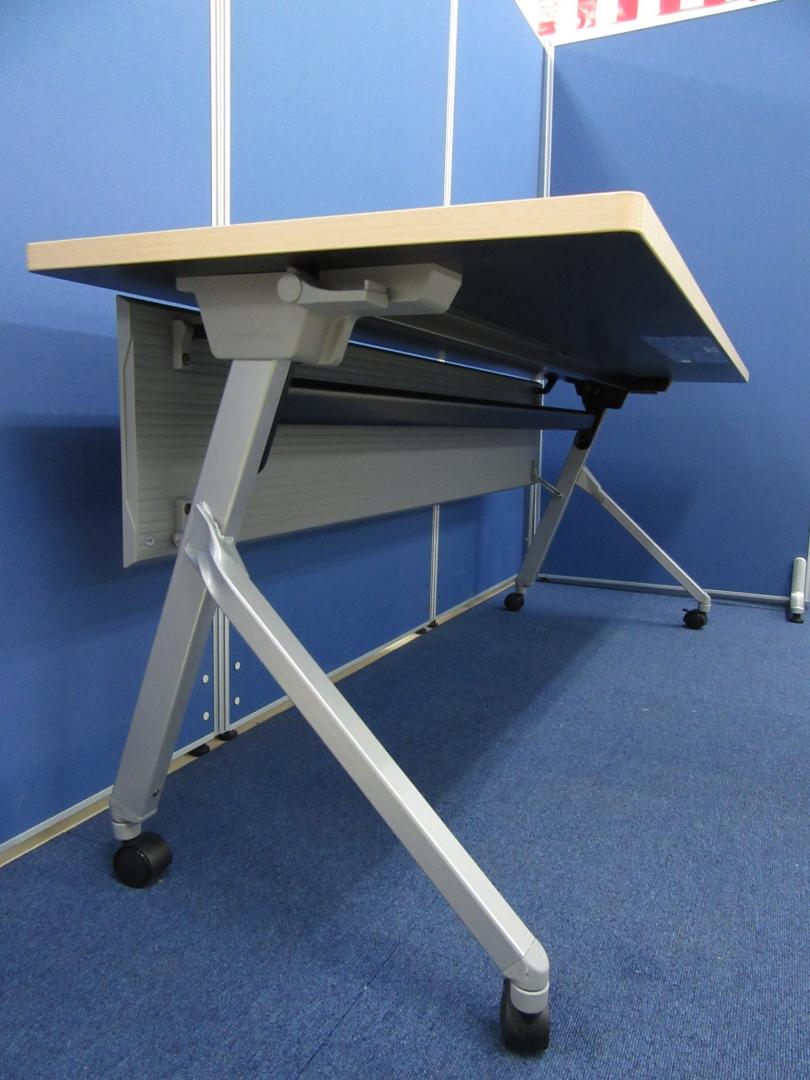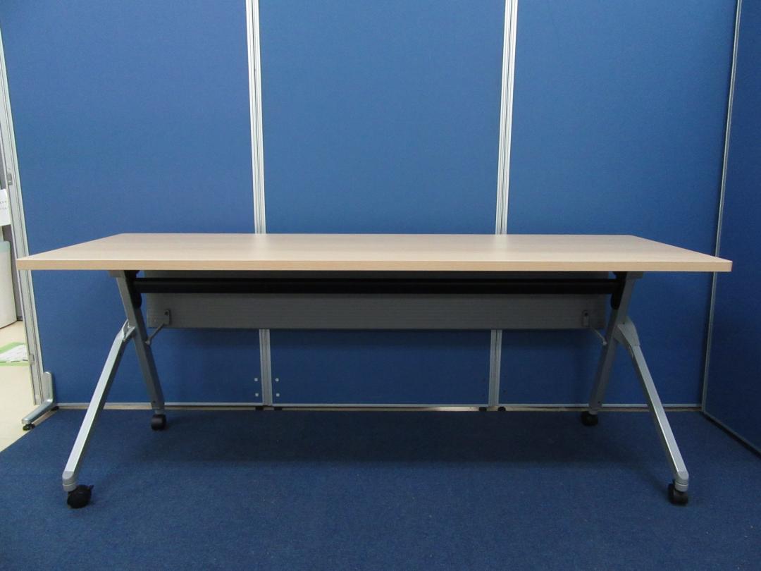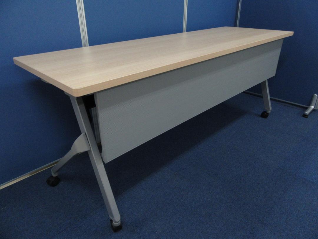 [9台⇒残り1台]岡村製作所製 サイドフォールドテーブル FRAPTER■綺麗な木目のネオウッドライト[幕板付/棚板無タイプ]- 足立・葛飾店