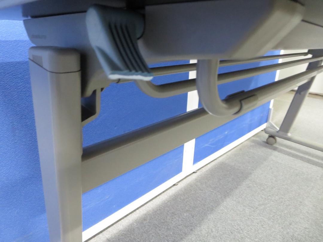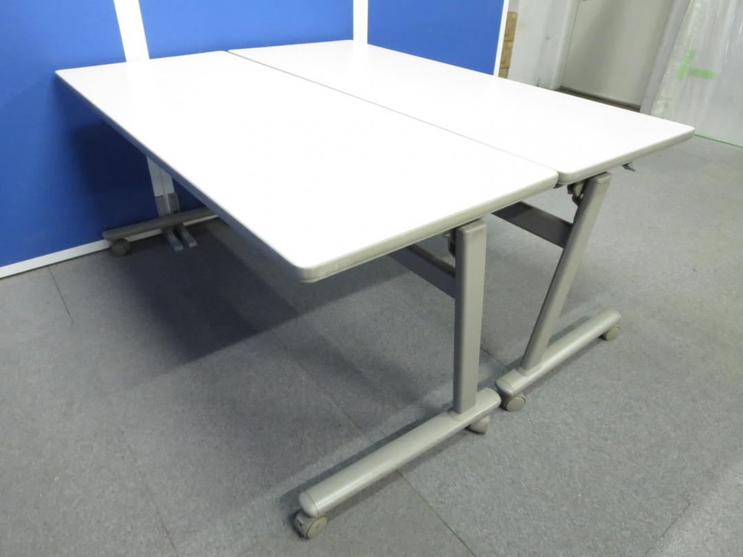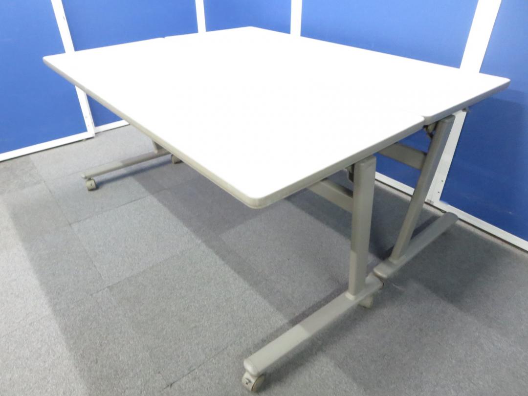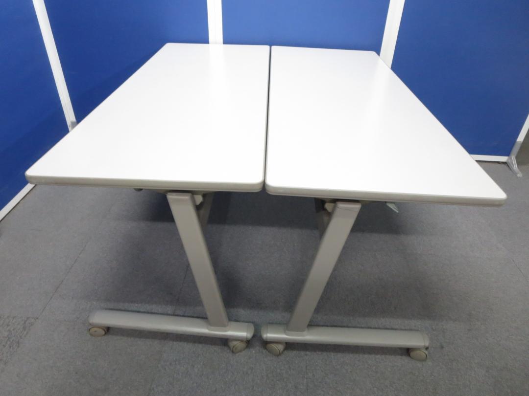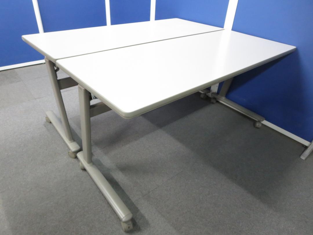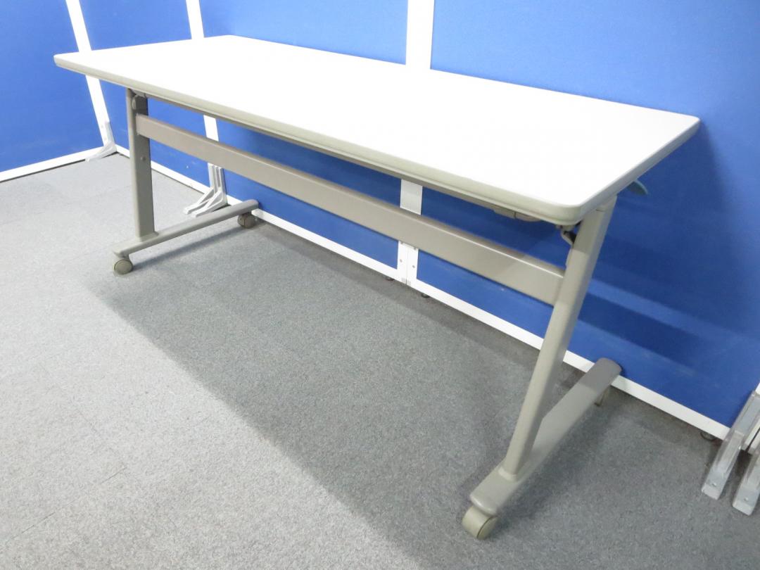 テーブル部分を折りたたんで重ねて収納できるオカムラ製のスタッキングテーブル。