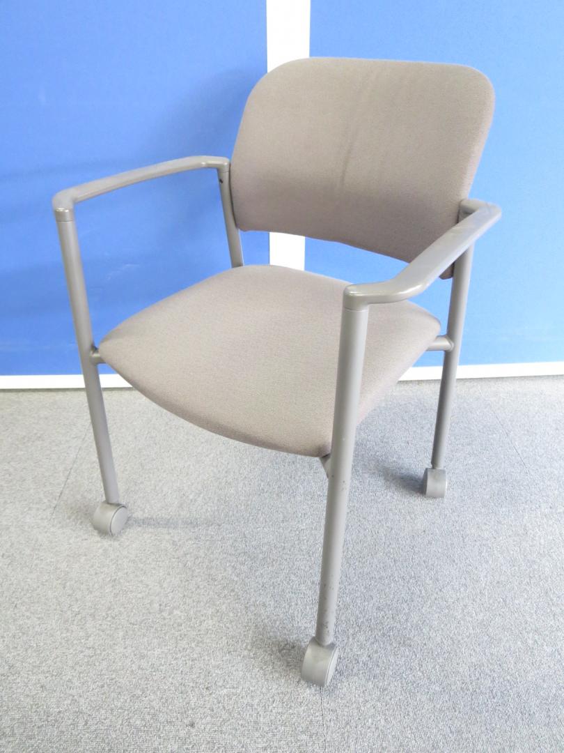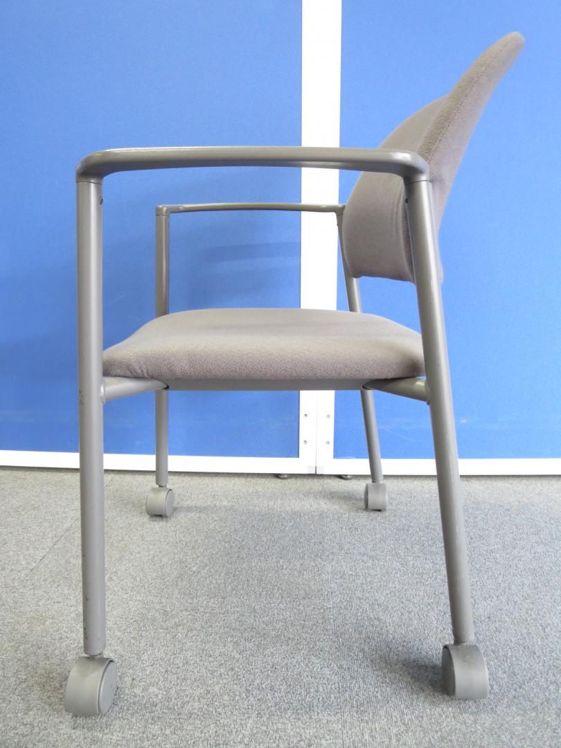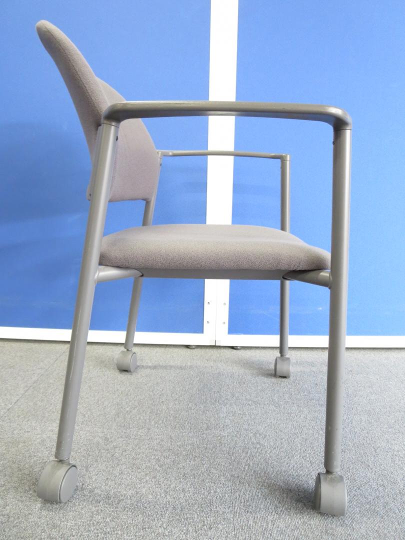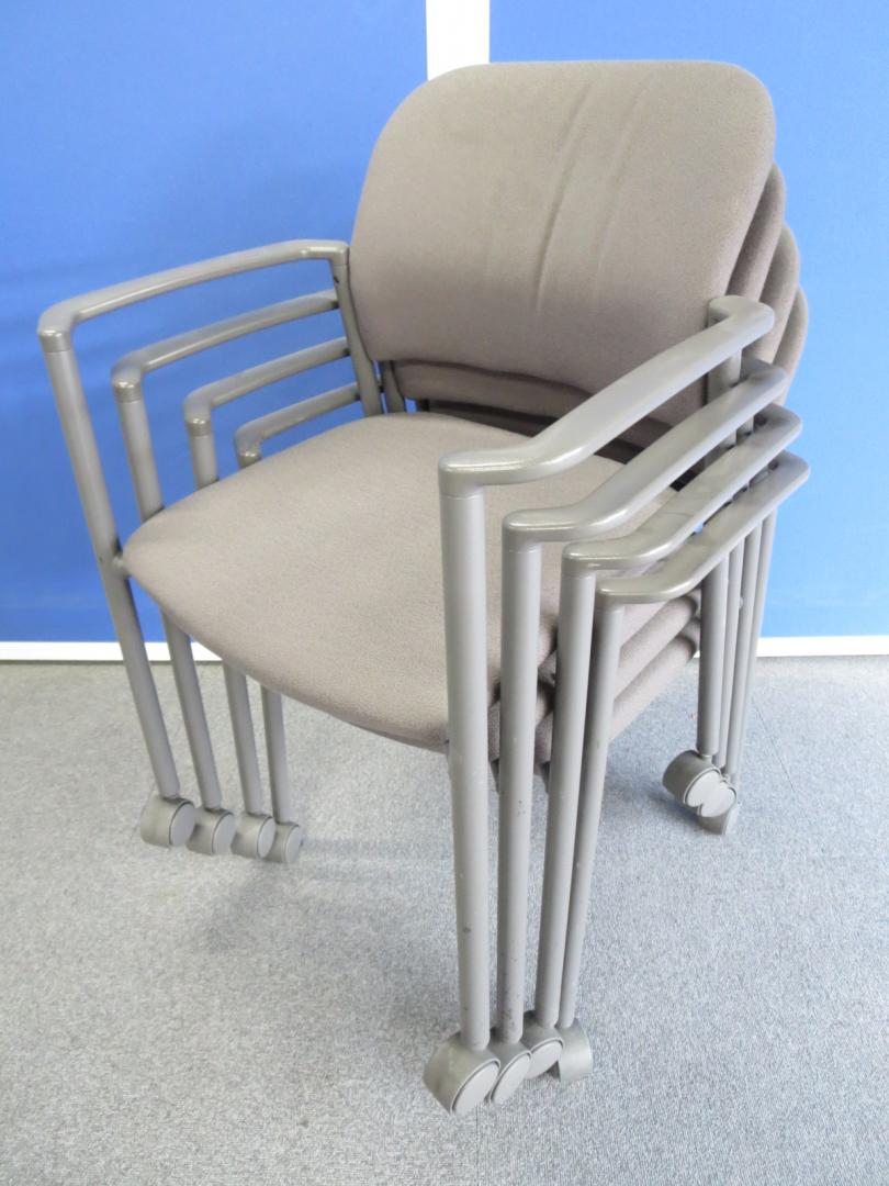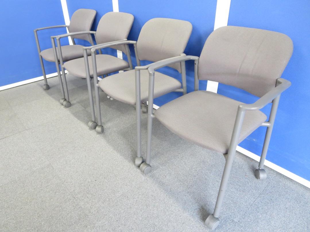 【セットでお得!】■肘付スタッキングチェア4脚セット キャスター付 グレー ■コクヨ製 ミーティングチェア- 川崎店