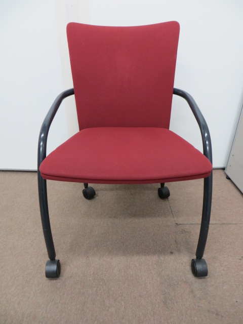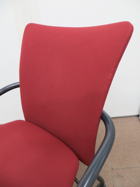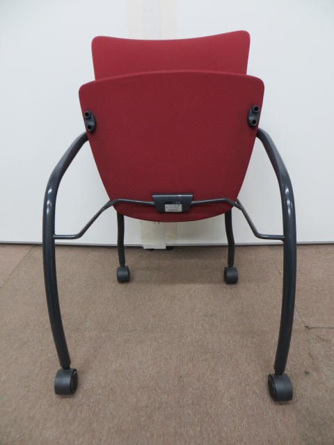 【値下げしました!\7500→55000】平行に重ねられるネスティングチェア2脚セット 渋みのあるレッド 【中古オフィス家具】- 在庫数