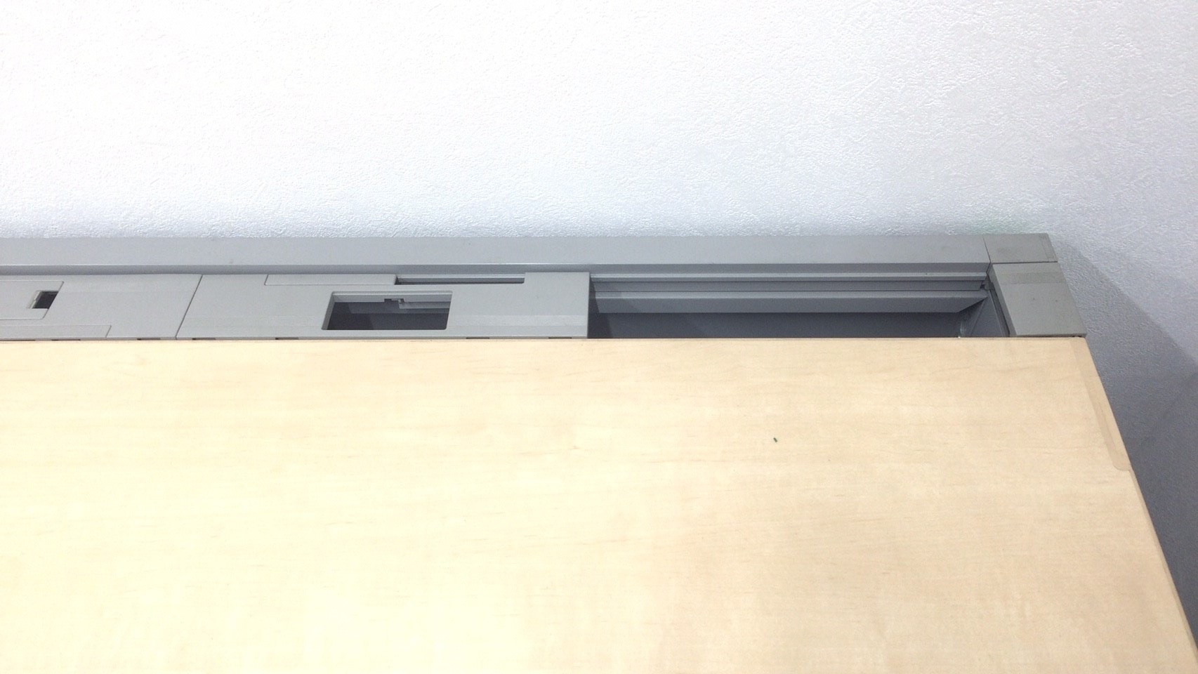 - 天板にコードホールが2ヵ所あり、レイアウト自在です。天板と幕版の間に30mmのすき間があり、対向配線も容易です。