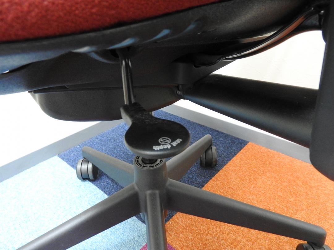 - 深く座りたい人など利用者にあった形で座面が前後45mm範囲で調整できるので、腰の負担を軽減します。