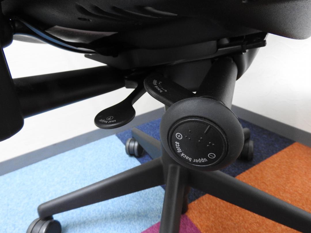 - 脊髄への負荷を軽減します。(もたれとのすき間を埋めて脊髄の自然なカーブをキープします)背もたれの上下独立した調節機構は、リープチェアだけが持つテクノロジーです。