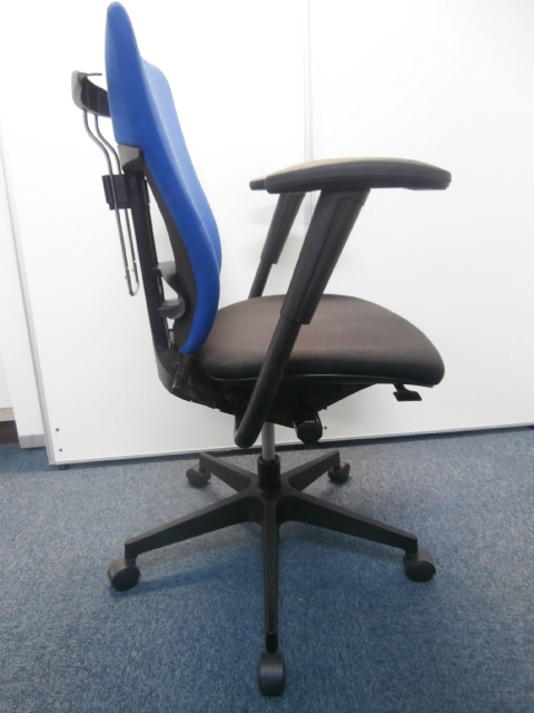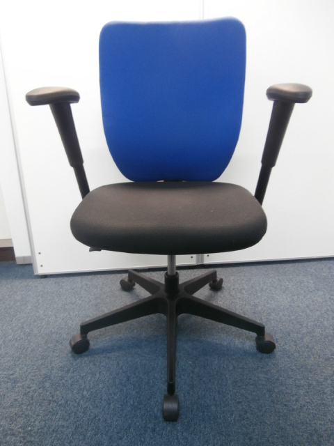 【一人ひとりにマッチする座り心地!姿勢の変化にフレキシブルに対応!】■イトーキ製 プラオ 肘付ローバックチェア ■サークル肘 ■背面ストロングブルーブルー&座面ブラック