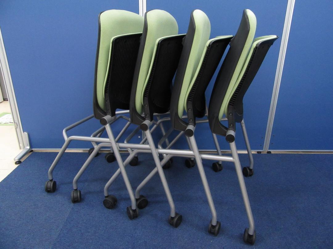 [お得な4脚セット!!]岡村製作所製 グラータチェア ライトグリーン■デザイン性・座り心地ともに◎!!背パット付きの希少タイプです!![ネスタブル]サーキュラーバリューCO2削減量の算出について