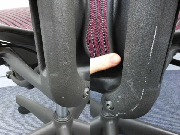 - 目立つ箇所あり傷・破れ・ほつれ・へたり・しわが多数または深い傷・破れ・ほつれ・へたり・しわが一部ある。※座面・背もたれ、シェル、脚部等にある。