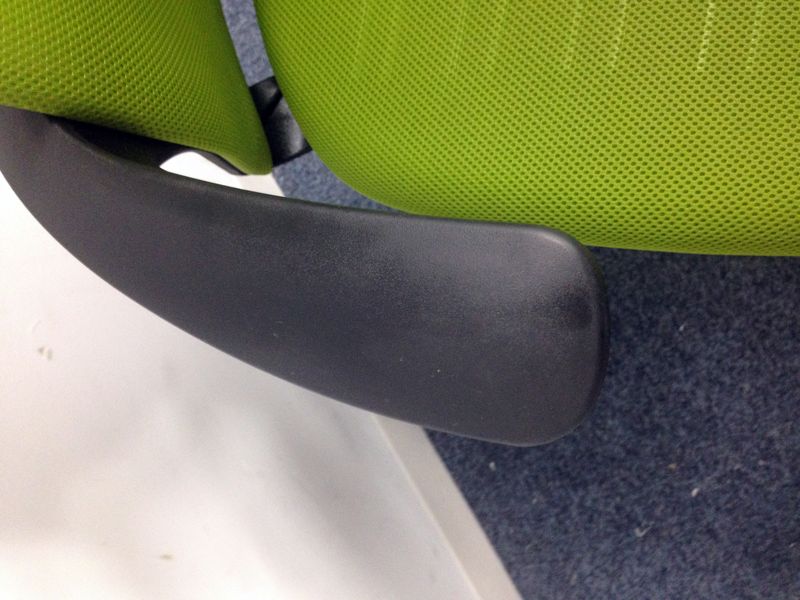 - あり黄ばみ・変色が広い範囲にうっすらある、または濃い黄ばみ・変色が一部ある。(例、座面・背もたれ、脚部等にある。)