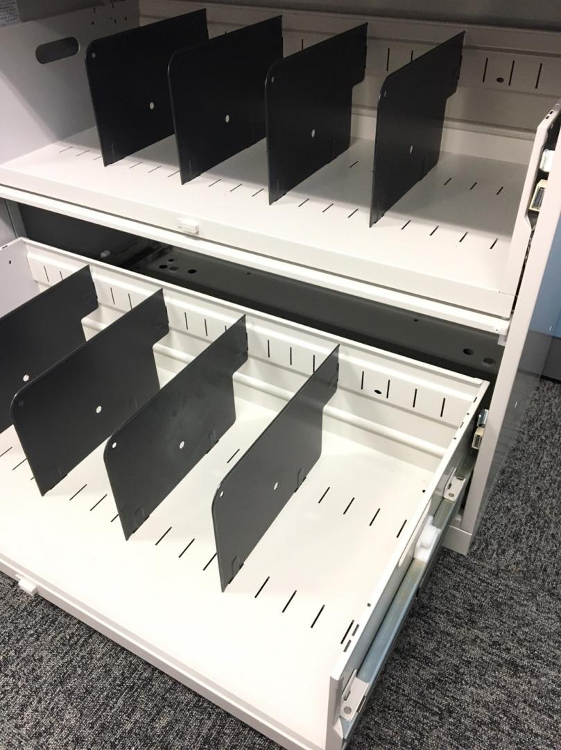 - 壊れている引出の開閉不可、施錠不可、棚板無しといったその書庫の本来の効用を果たすための機能に不具合がある(例、扉、引出の開閉が行えない。)