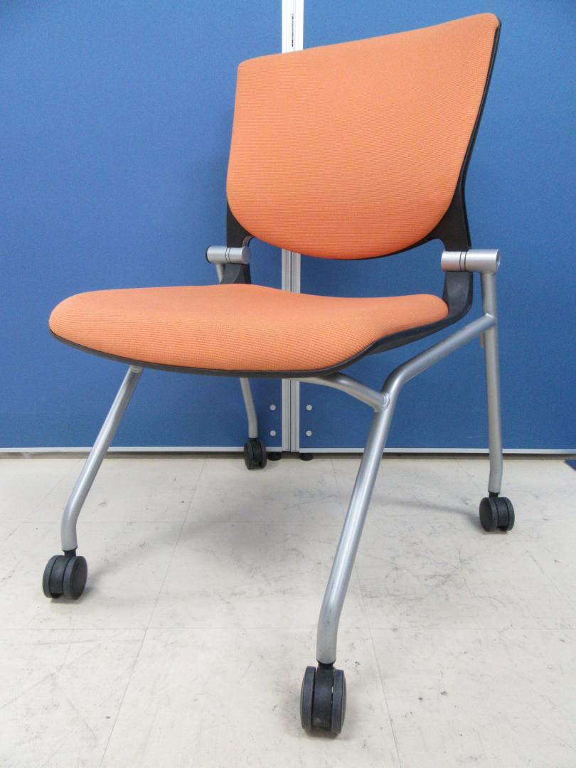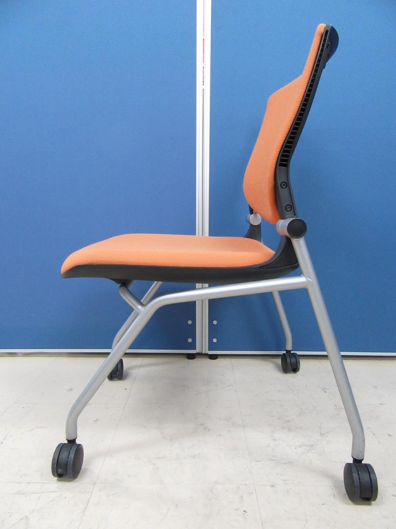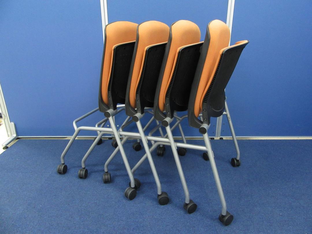 [お得な4脚セット!!]岡村製作所製 グラータチェア オレンジ■デザイン性・座り心地ともに◎!!背パット付きの希少タイプです!![ネスタブル]サーキュラーバリューCO2削減量の算出について