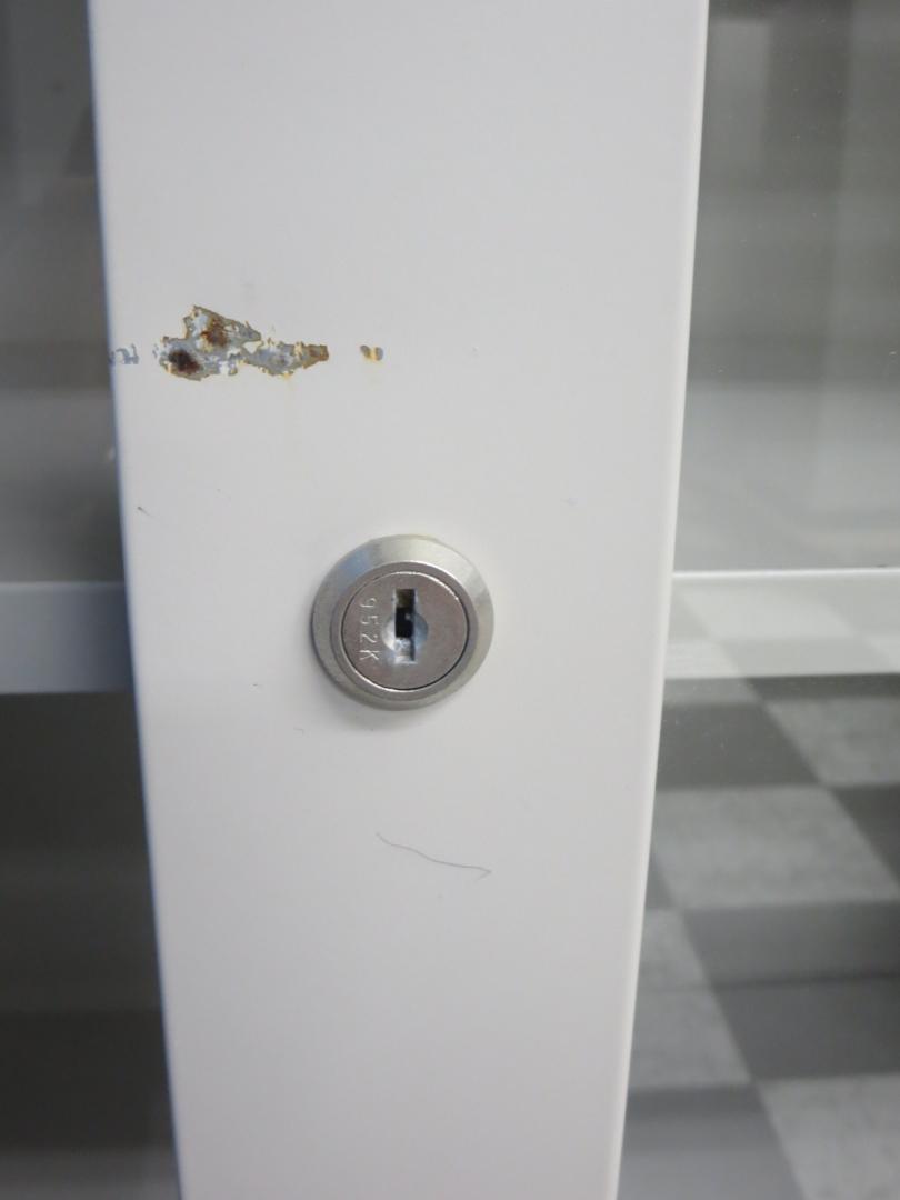 - 多数不具合あり引出の開閉不可、施錠不可、棚板無しといったその書庫の本来の効用を果たすための機能以外の多数が使用不可(例、扉、引出の開閉がしづらいなどがある。 )
