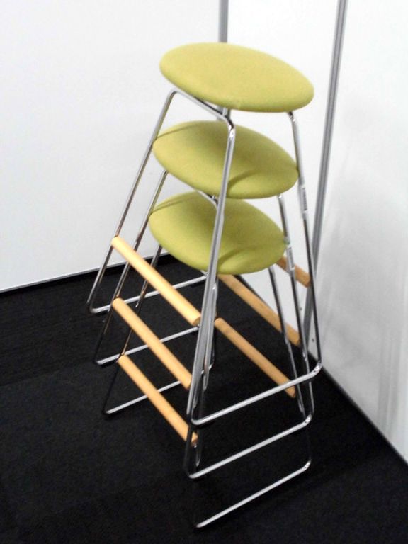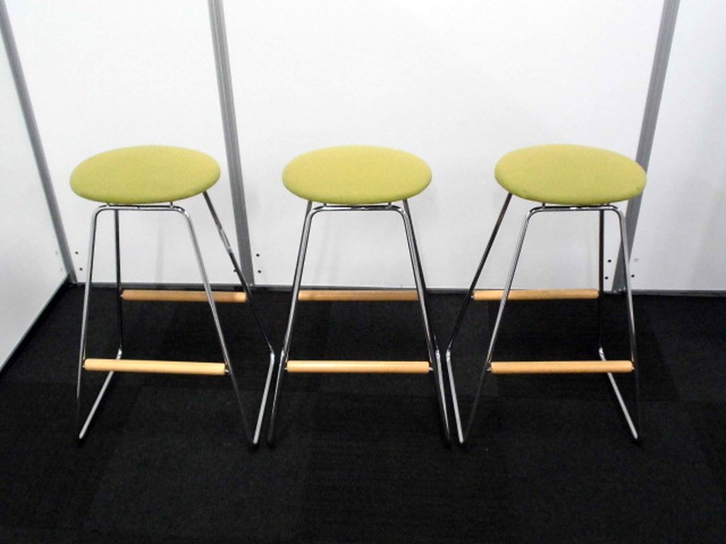 【ハイチェア】可愛いキミドリ色のカウンターチェア3脚セット【ハイタイプスツール】- 立川・八王子店