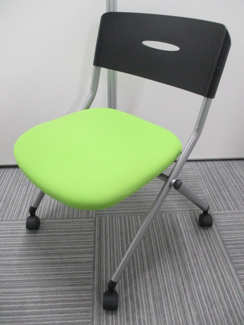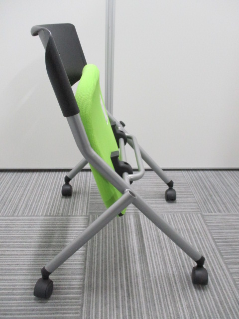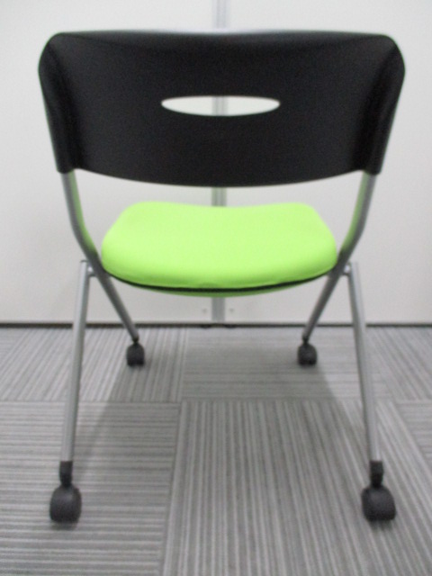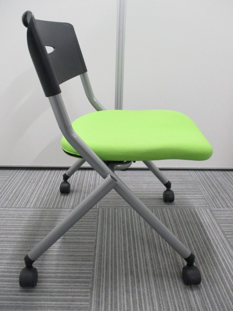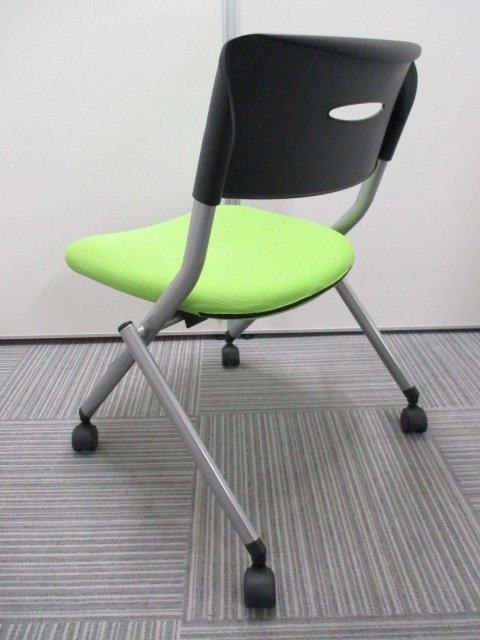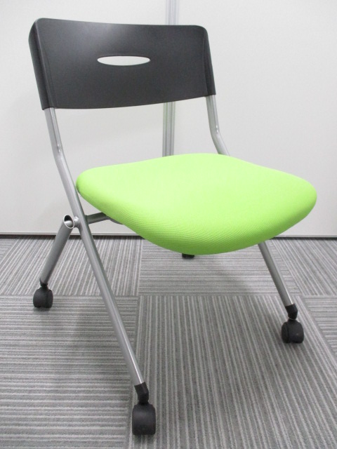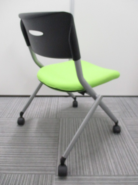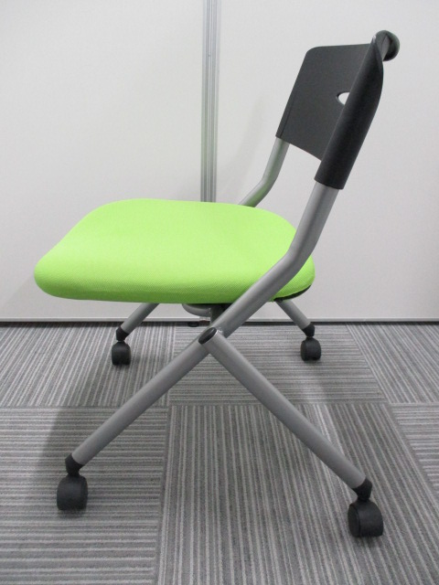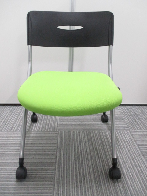 大量10脚ロット!ライトグリーン色のミーティングチェア!キャスター付き!- 在庫数