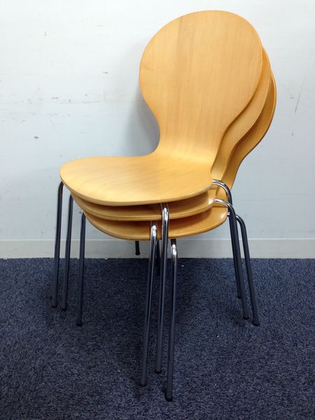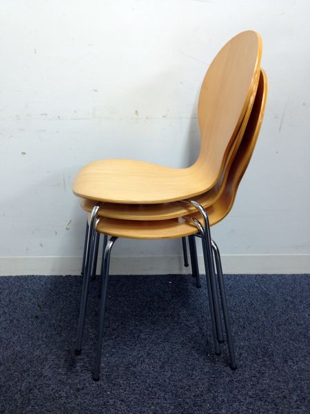 【3脚セットのお値打ち商品】【重ねて収納出来る木製のイス】ご家庭用にもオススメです!木製・丸みを帯びたデザインが特徴です- 名古屋千種店