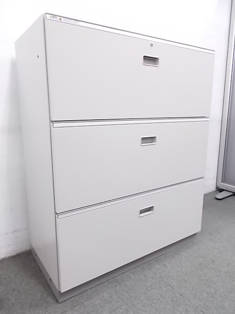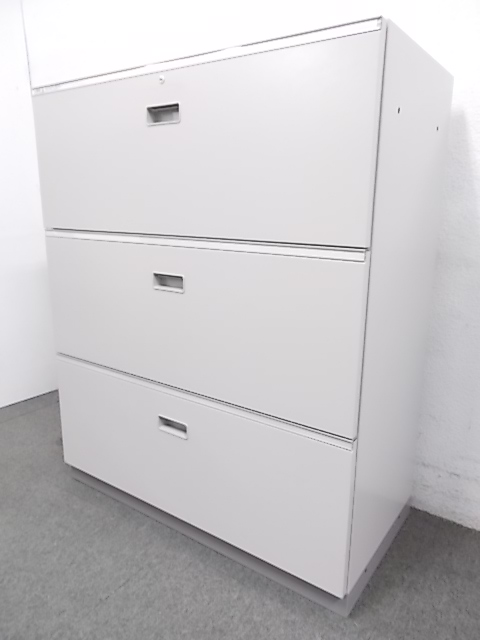 【4台限定在庫入替セール品】イトーキ製の定番書庫!人気の引き出し(ラテラル)タイプになります! イトーキ シンライン ホワイトグレー 3段ラテラル 天板付き