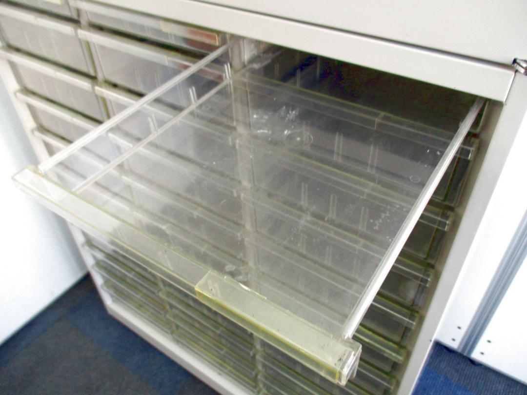 - 多数不具合あり引出の開閉不可、施錠不可、棚板無しといったその書庫の本来の効用を果たすための機能以外の多数が使用不可(例、扉、引出の開閉がしづらいなどがある。 )