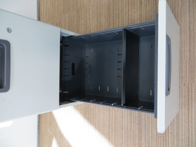 - 一部不具合ありその脇机・ワゴンの本来の効用を果たすための機能以外の一部が使用不可な状態。(例、引出が開閉しづらい、 キャスターロック機能使用不可、ラッチ不良 等がある。)