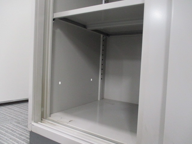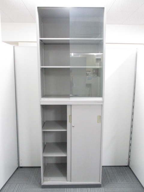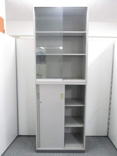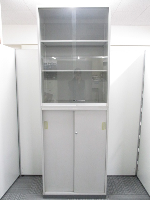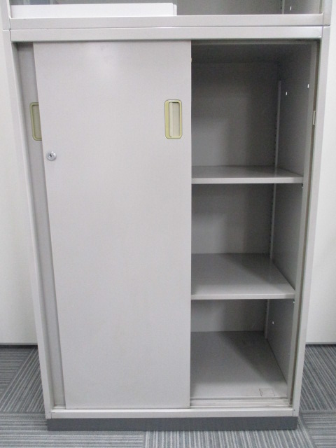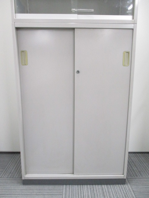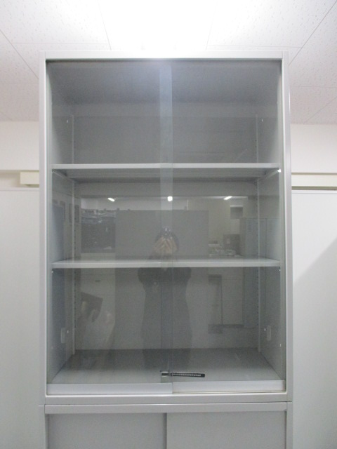 内田洋行製のガラス引戸書庫+スチール引戸書庫のセットです。