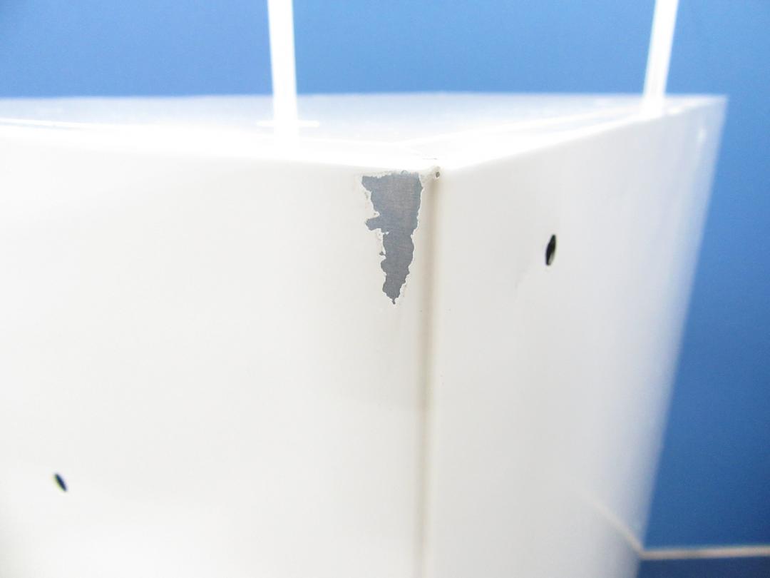 - かなり強い濃い黄ばみ・変色が商品全体にある。(例、天板、正面、背部、サイド部分にある。)