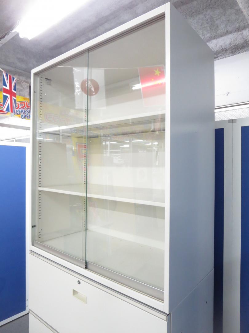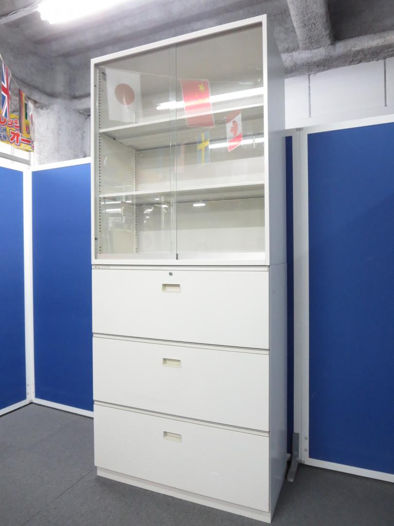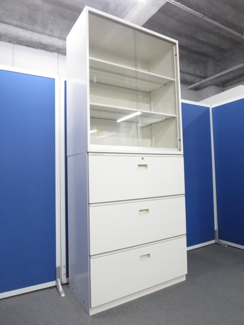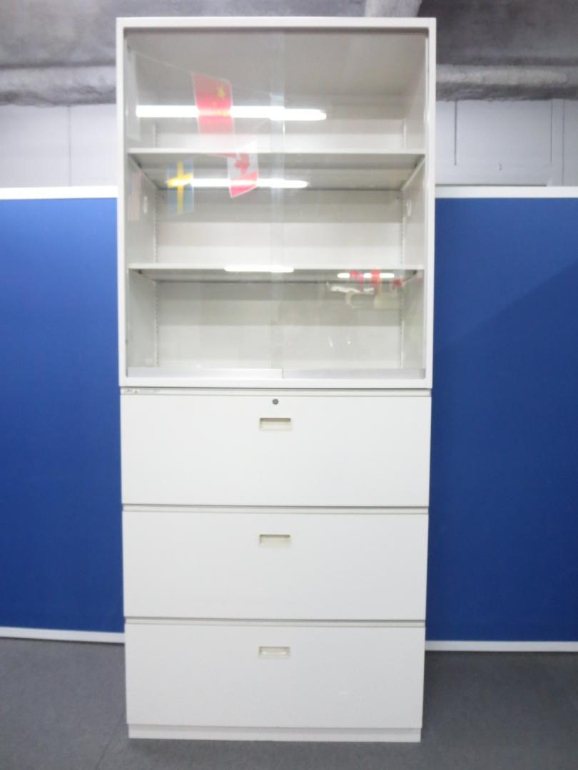 【状態良好!ホワイト色】■ガラス引戸+3段ラテラル書庫セット■イトーキ製(ITOKI)シンラインキャビネット- 川崎店