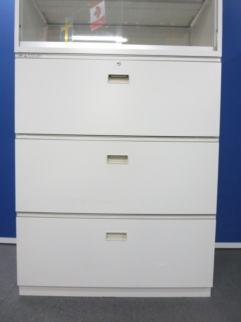 【引き違い+引き出しの組み合わせ 】◆イトーキ/シンライン 引き戸 3段ラテラル 本棚 収納 家具 リユース 九州最大級《オフィスバスターズ福岡博多店は、福岡を拠点として、日本全国へ中古オフィス用品・オフィス家具を提供しております》