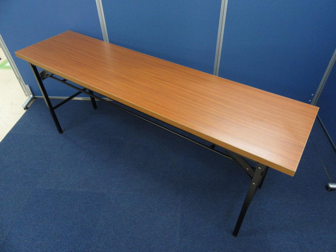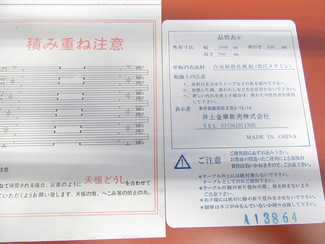 [なにかと必要な折りたたみテーブル]井上金庫 幅1800mm/奥行450mm チーク■使用しない時は折りたたんで収納可能です!![新品]状態について
