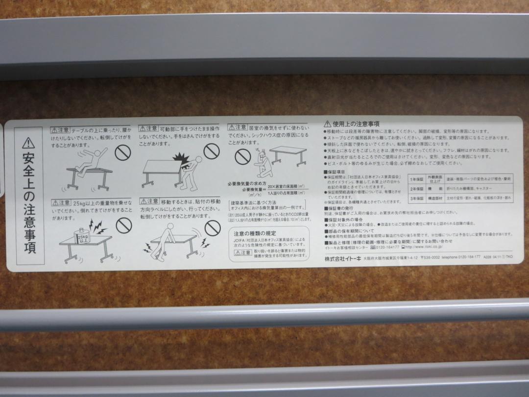 - 一部不具合あり天板歪み、アジャスター無し、キャスター使用不可ようなそのテーブルの本来の効用を果たすための機能以外の一部が使用不可な状態。(例、キャスターロッ ク機能使用不可、棚板無し等がある。)